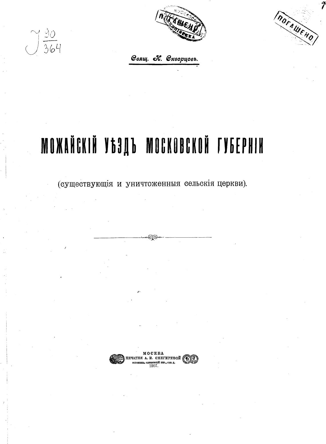 Можайский уезд Московской губернии (существующие и уничтоженные сельские церкви). - Скворцов Н. А.