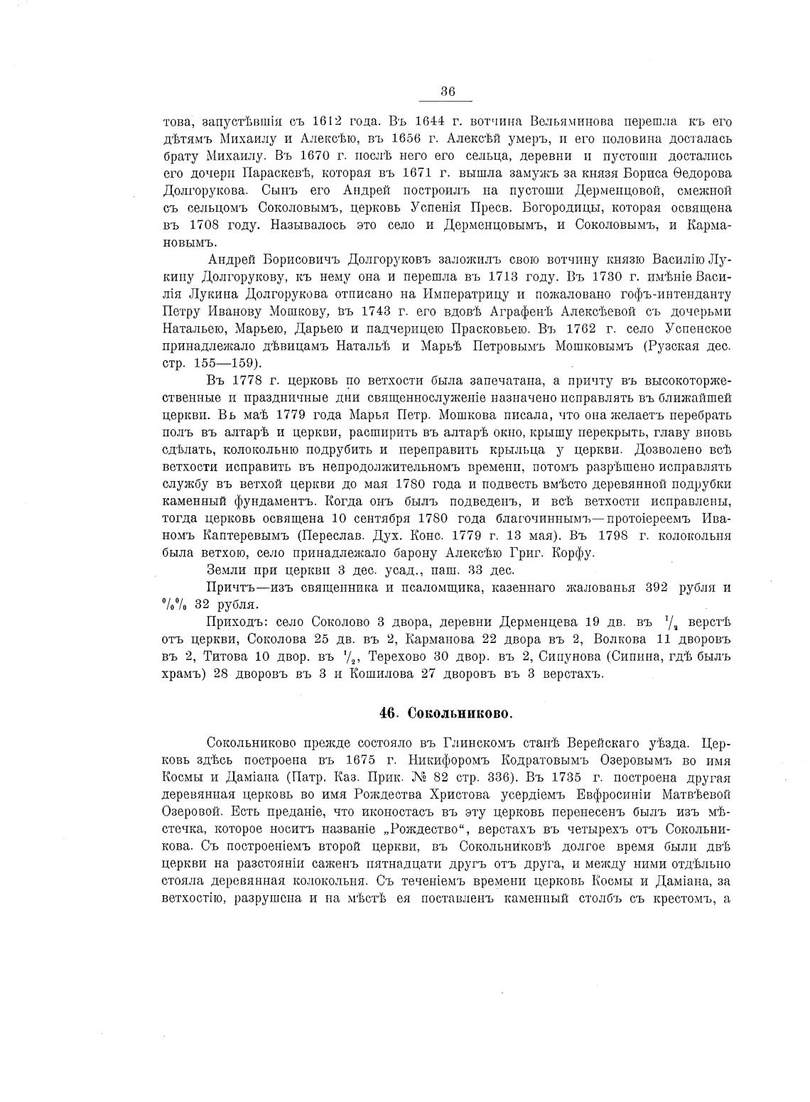 Сокольниково прежде состояло въ Глинскомъ станеК Вереискаго ујззда. Цер-