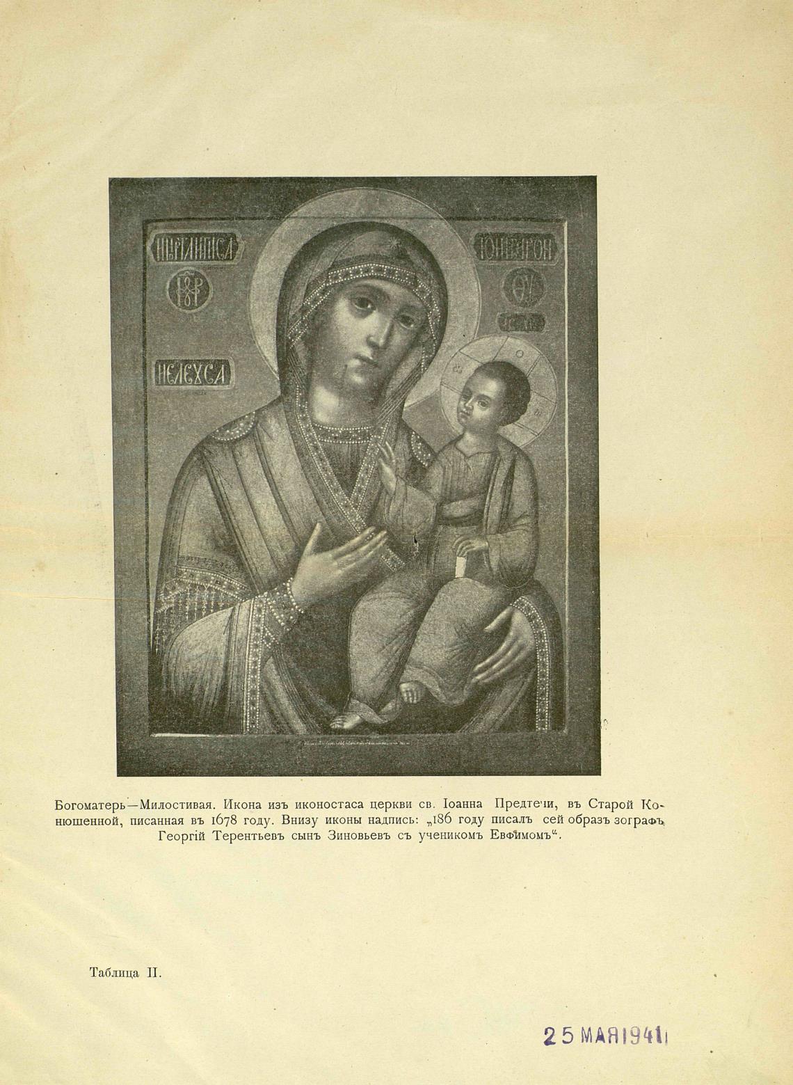 Богоматерь —Милостивая. Икона изъ иконостаса церкви св. 1оанна Предтечи, въ Старой Ко-