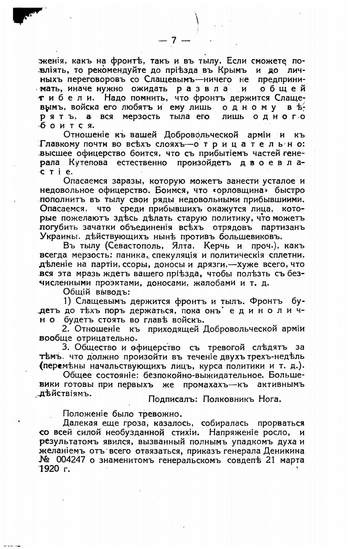 ныхъ переговоровъ со Слащевымъ—ничего не предприни-