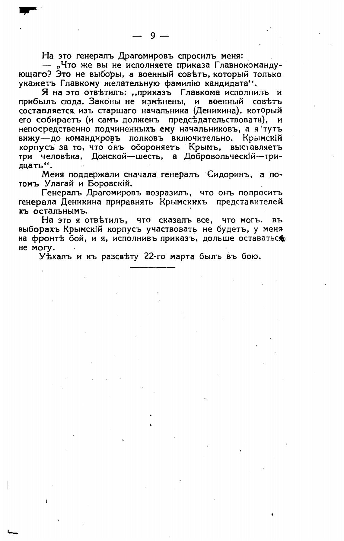 на фронт± бой, и я, исполнивъ приказъ, ДОЛЬШе оставатьс*