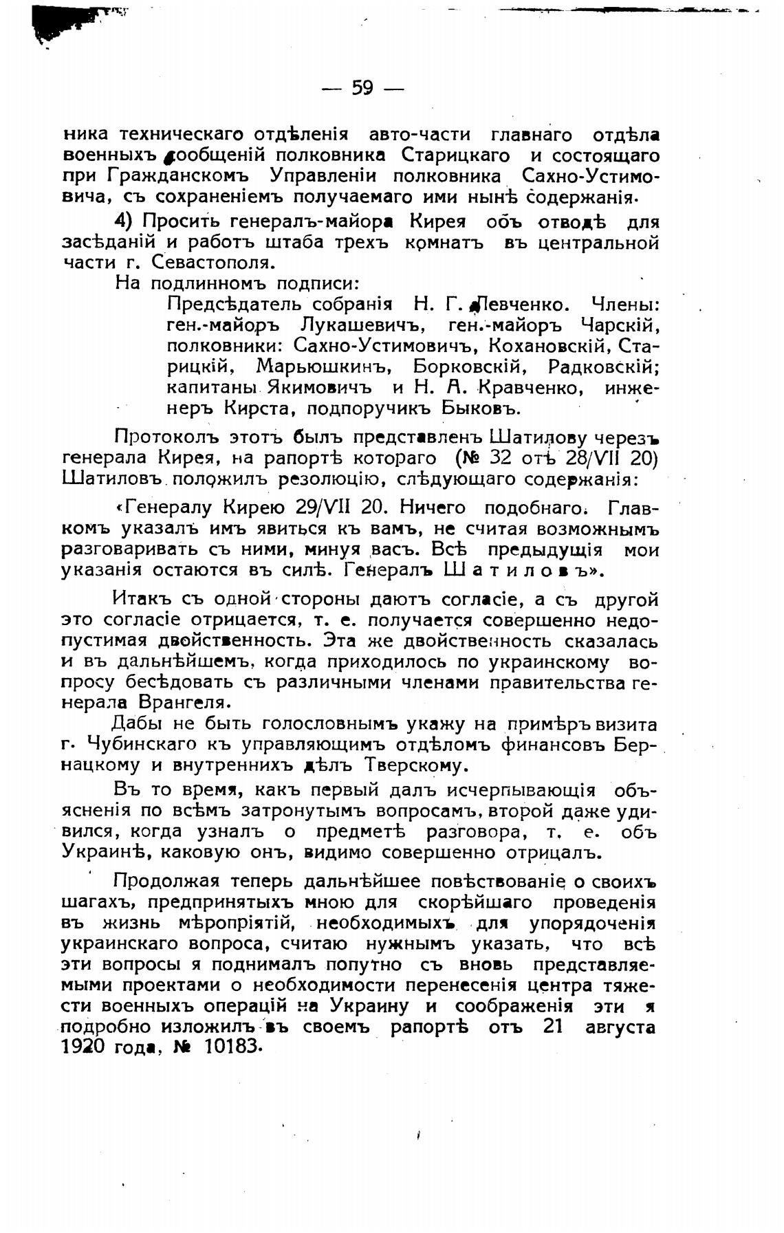 «Генералу Кирею 29/VlI 20. Ничего подобнаго. Глав-