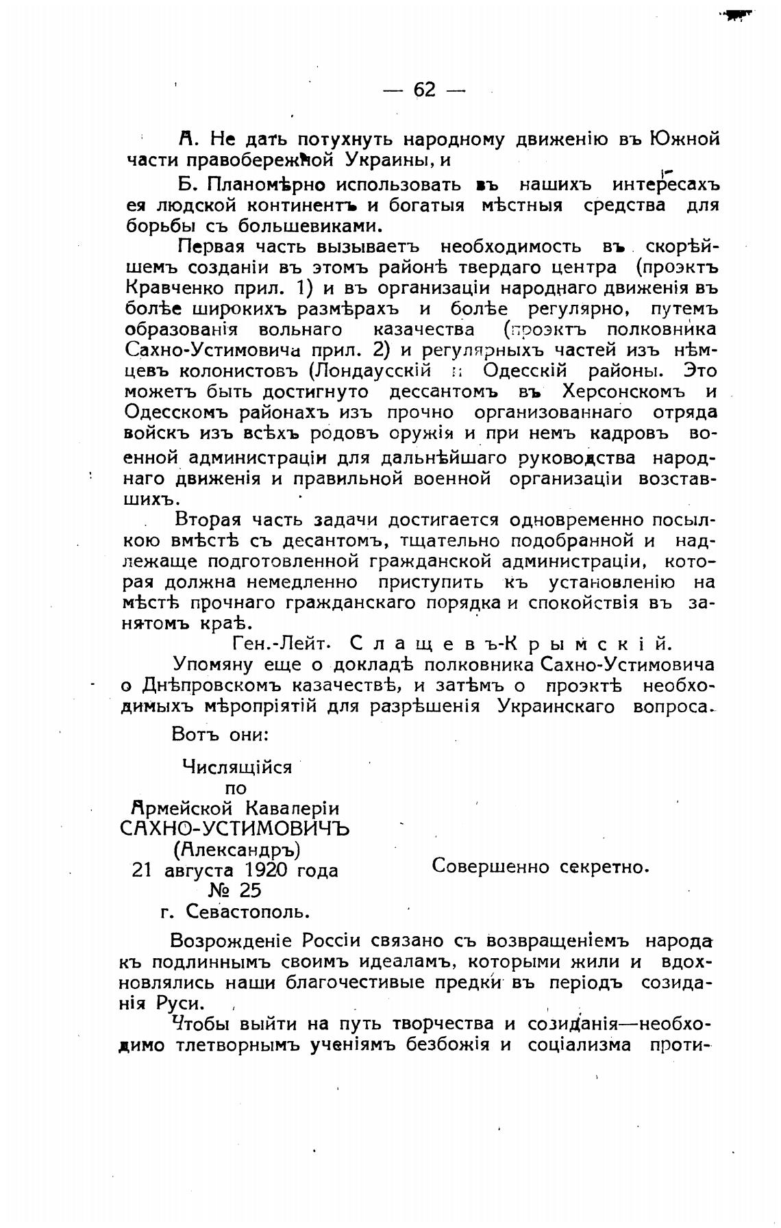 Упомяну еще о доклад± полковника Сахно-Устимовича
