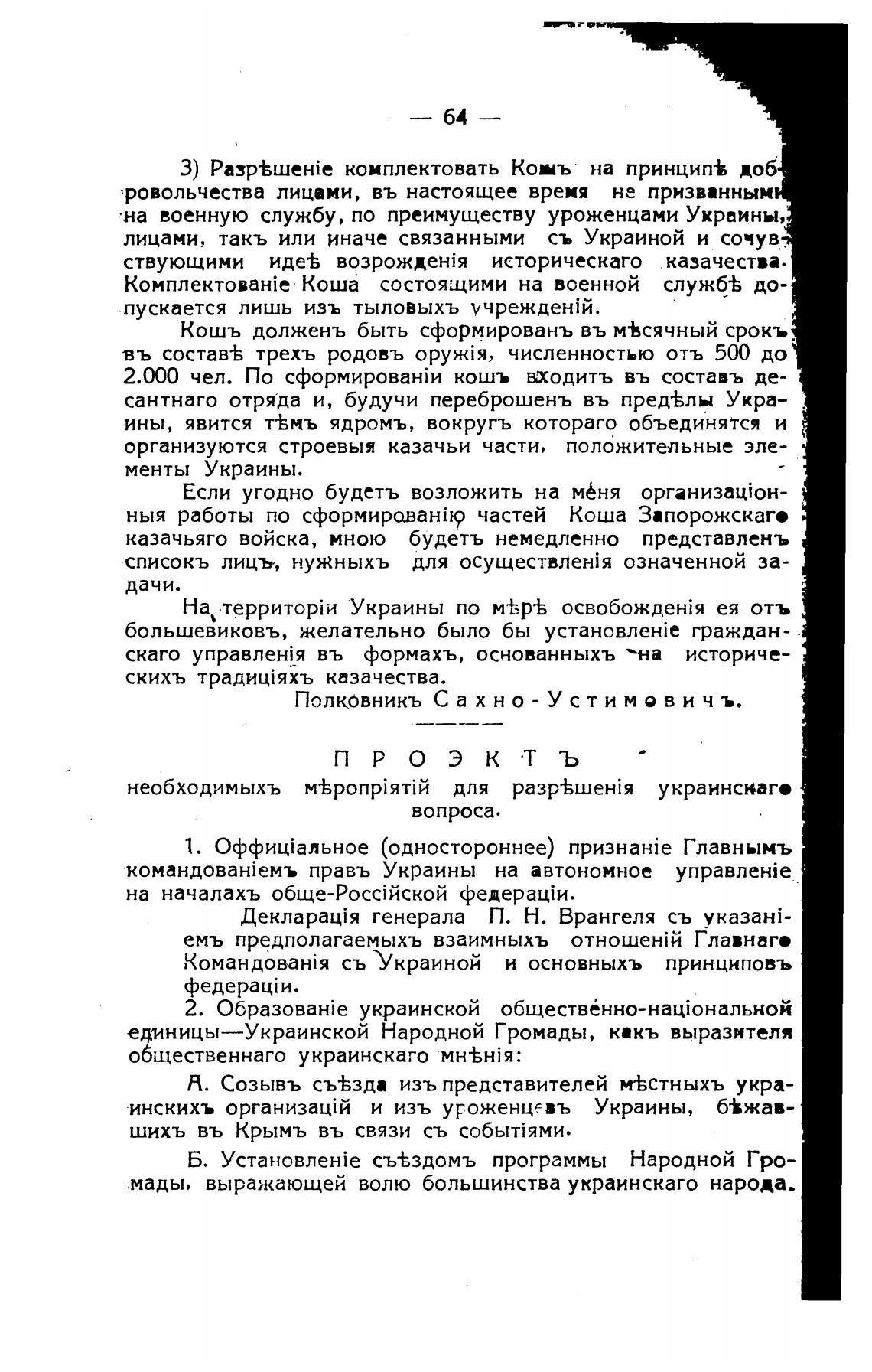 А. Созывъ съ%зда изъ представителей м%стныхъ укра-