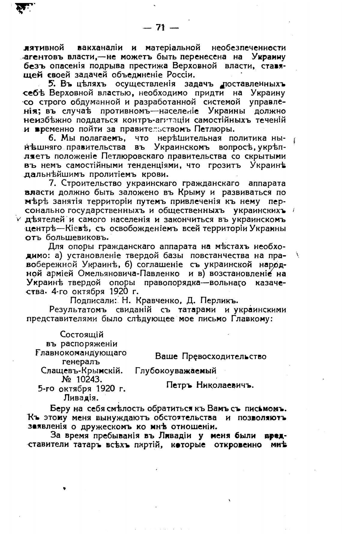 Подписали: Н. Кравченко, Д. Перликъ.