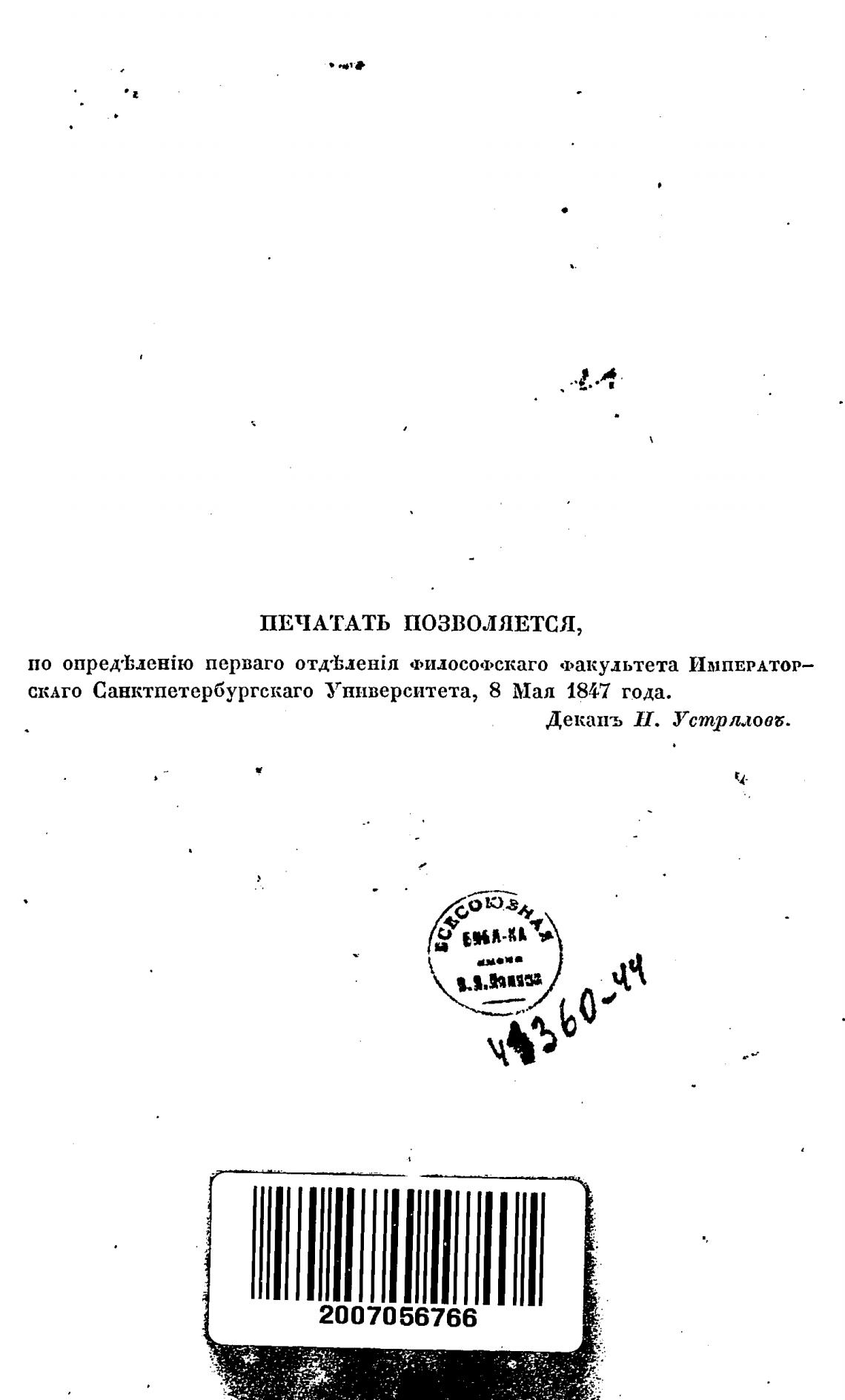 СКАГО Санктпетербургскаго Университета, 8 Мал 1847 года.