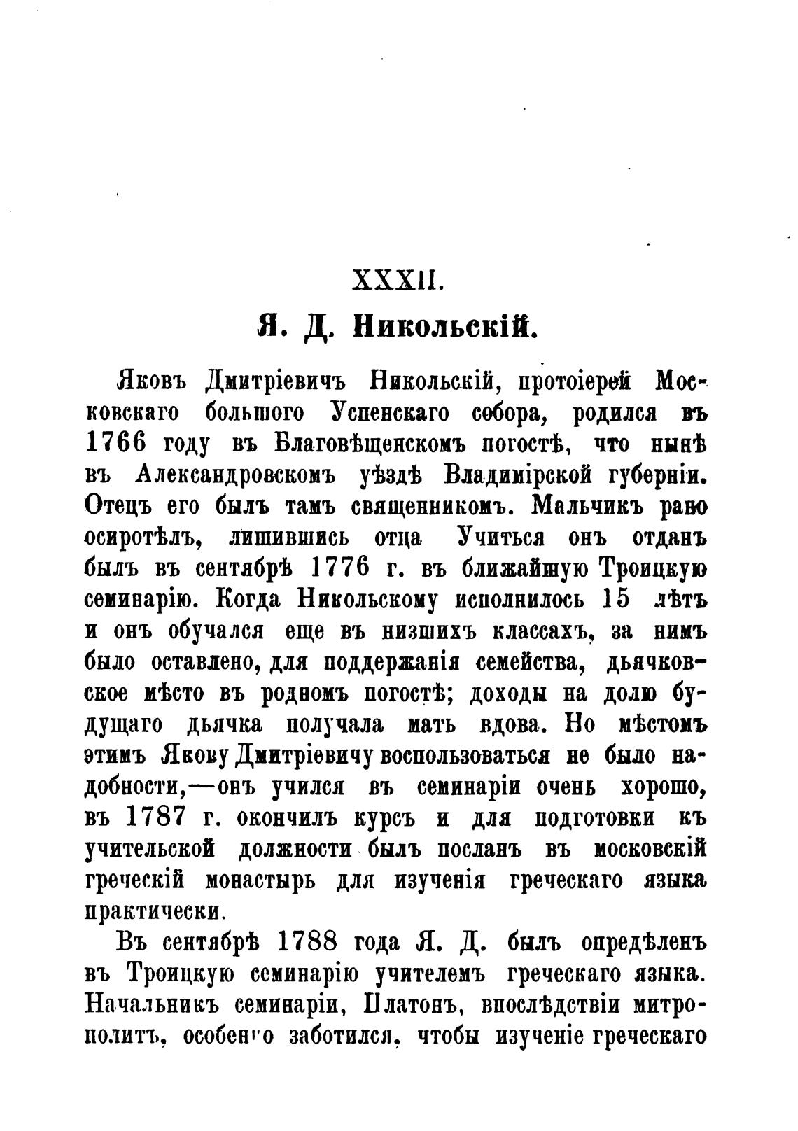 Въ сентябргЬ 1788 года Я. Д. быль опре$ленъ