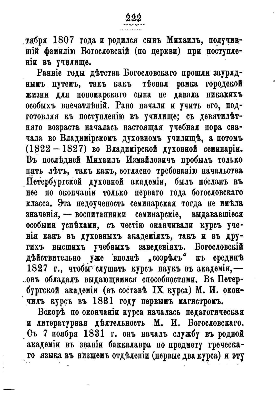 PaHHie годы Отства Богословскаго прошли зауряд-