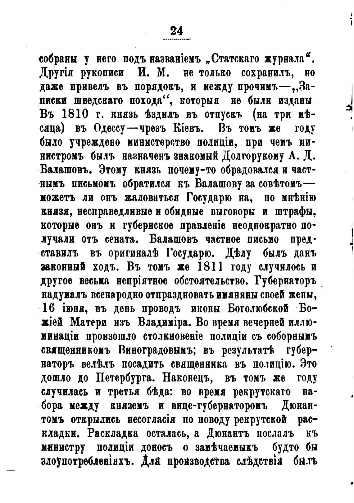 Въ 1810 г. князь Јздилъ въ отпускъ (на три мсь-