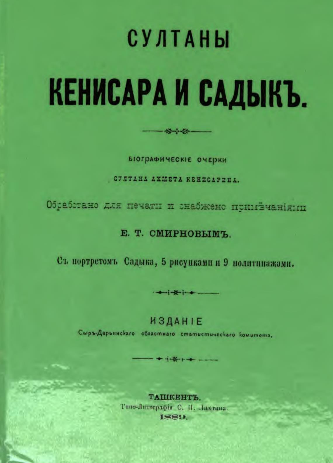 Съ портретомъ Садыка, 5 рисуиками и 9 нолтгппажами.