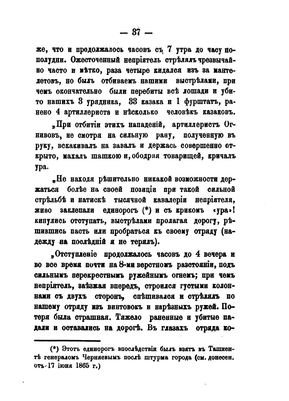 то нашихъ З урядника, 33 казака и 1 фурштать, ра-