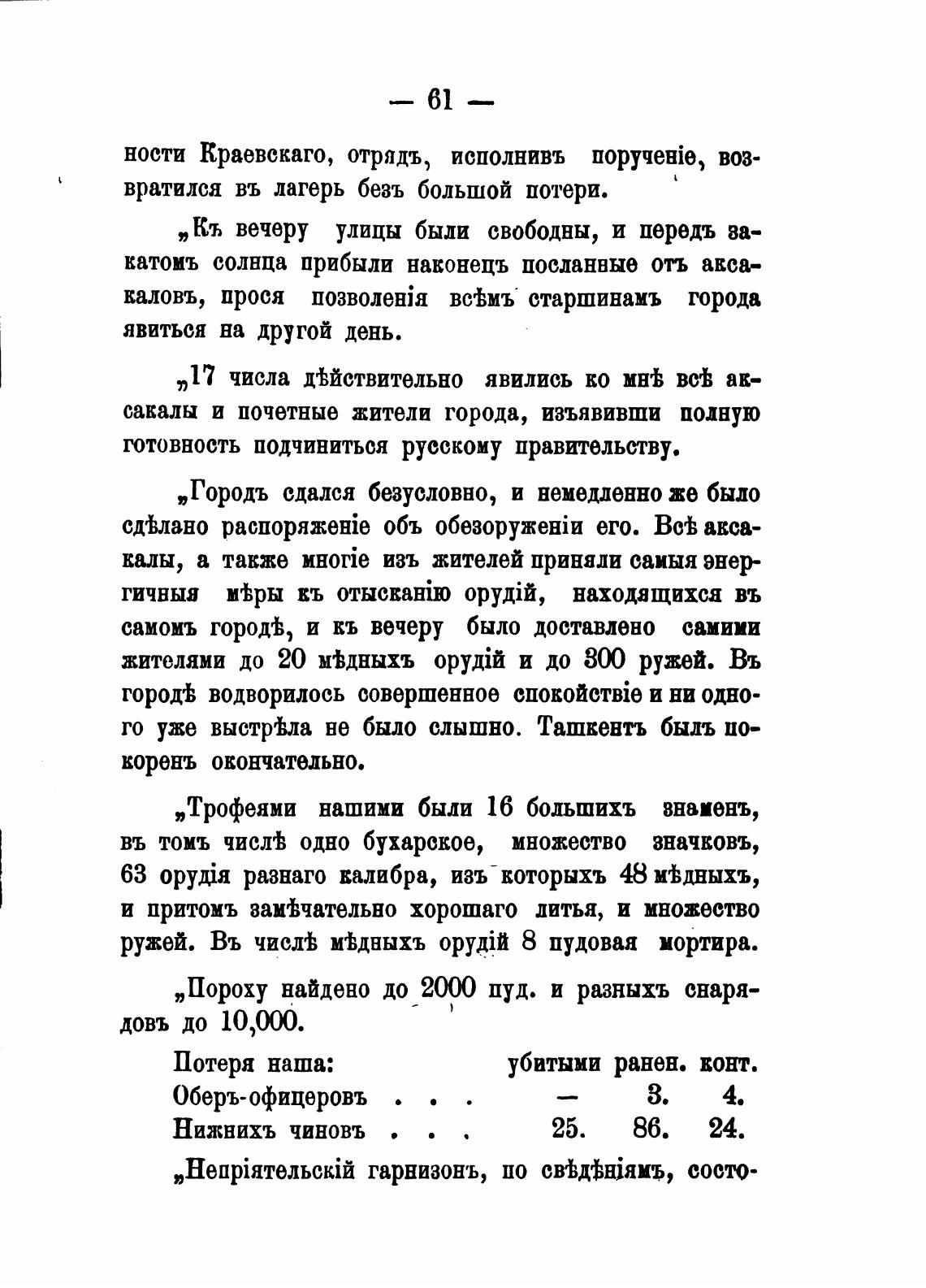 го уже выстфа не было слышно. Ташкентъ быдъ по-