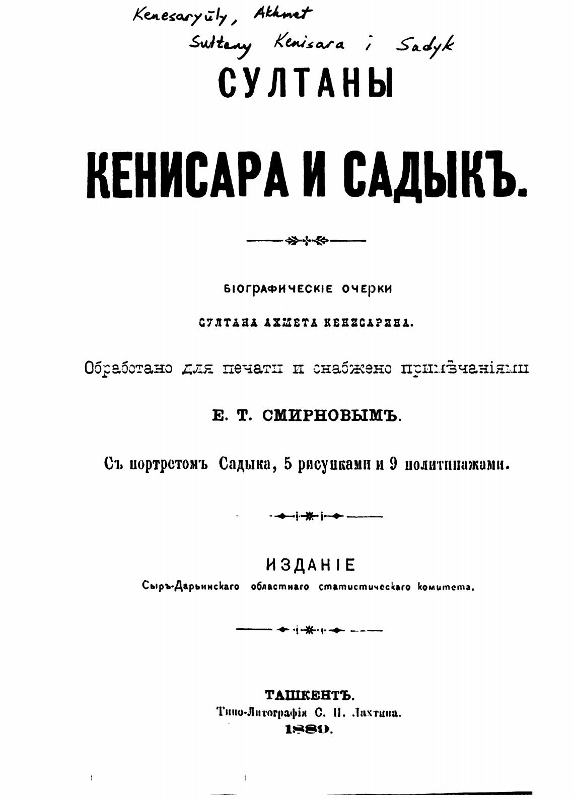 Съ иортретомъ Садыка, 5 рисуилами и 9 иолитппажами.