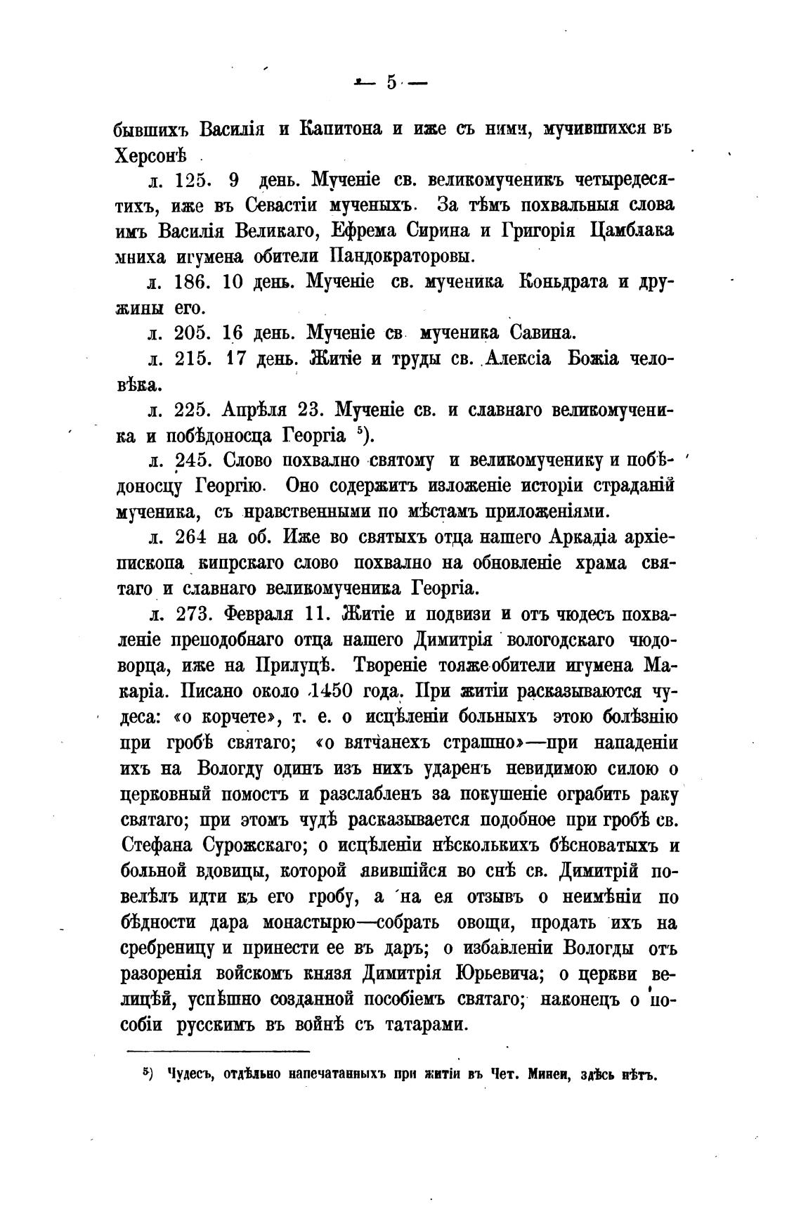5) Чудесь, отдЬьно напечатанныхъ при въ Чет. Минеи, зжь п%тъ.