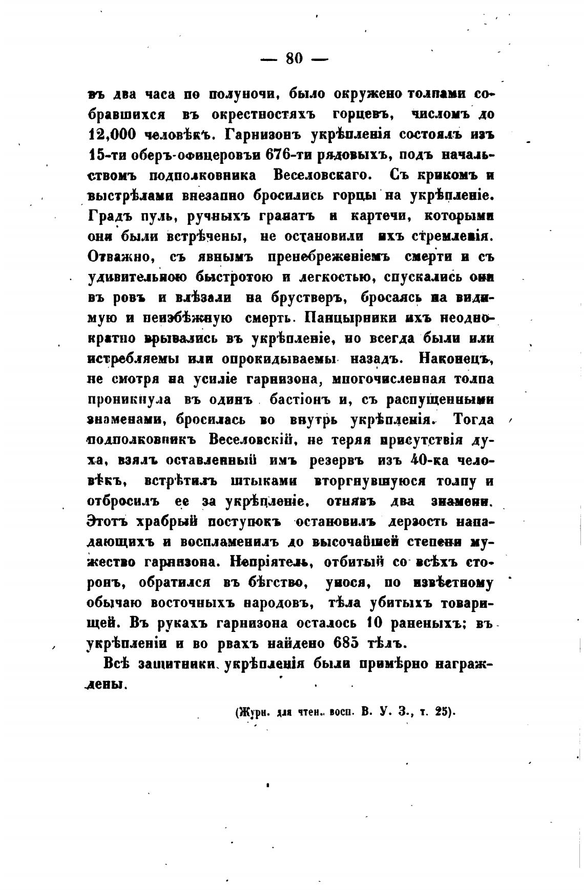 ствомъ подполковника Веселовскаго. Съ крикомъ и