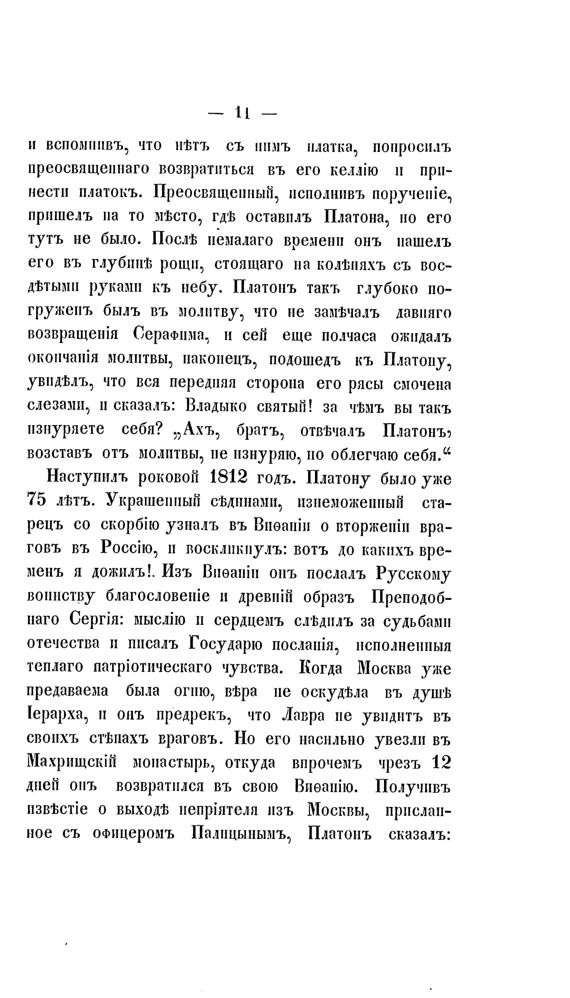 Наступилъ роковой 1812 годъ. Платону было уже