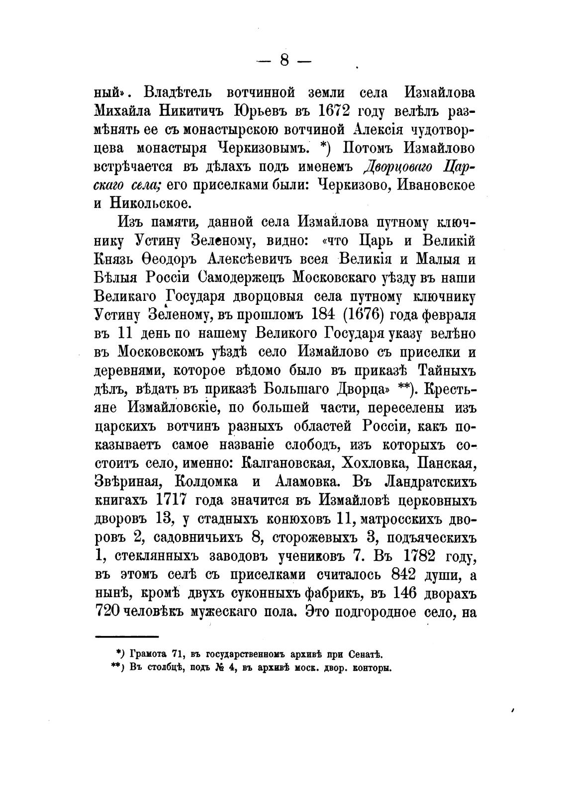 въ Московскомъ уЬ3Д'Ь село Измайлово съ приселки и