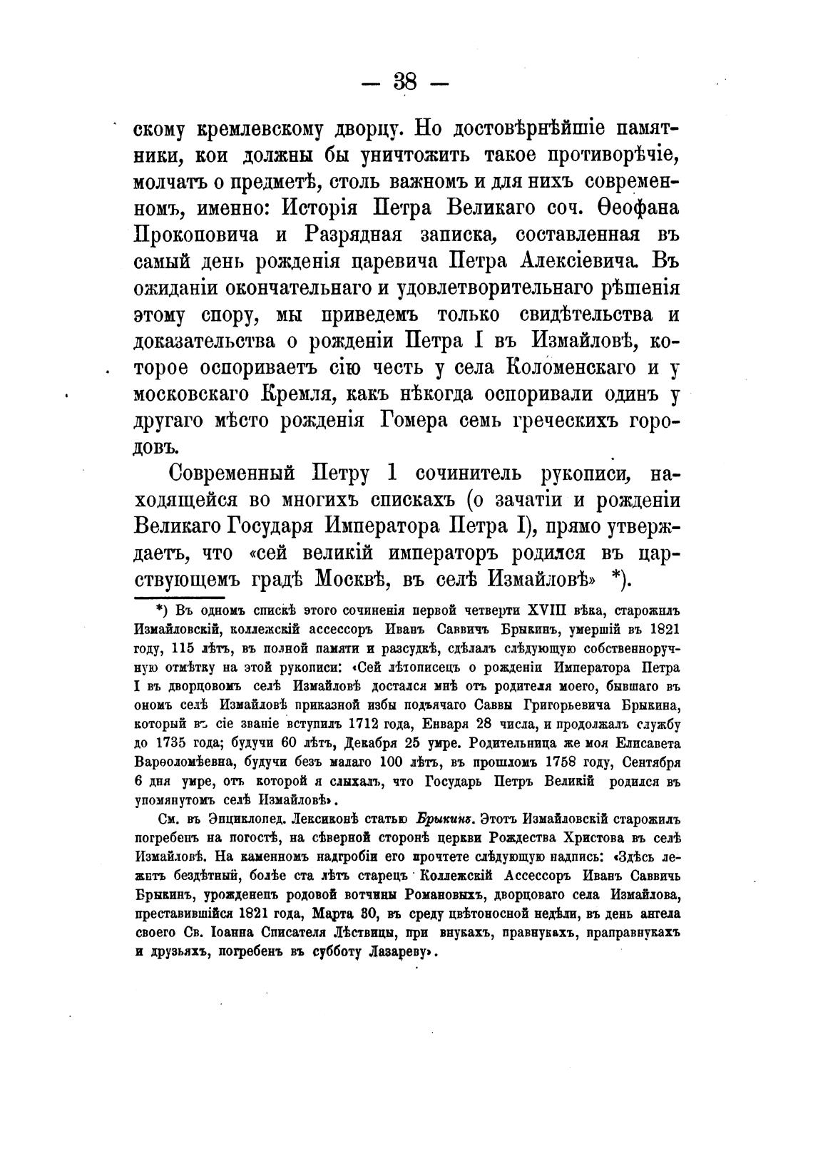 доказательства о Петра I въ Измайлой, ко-