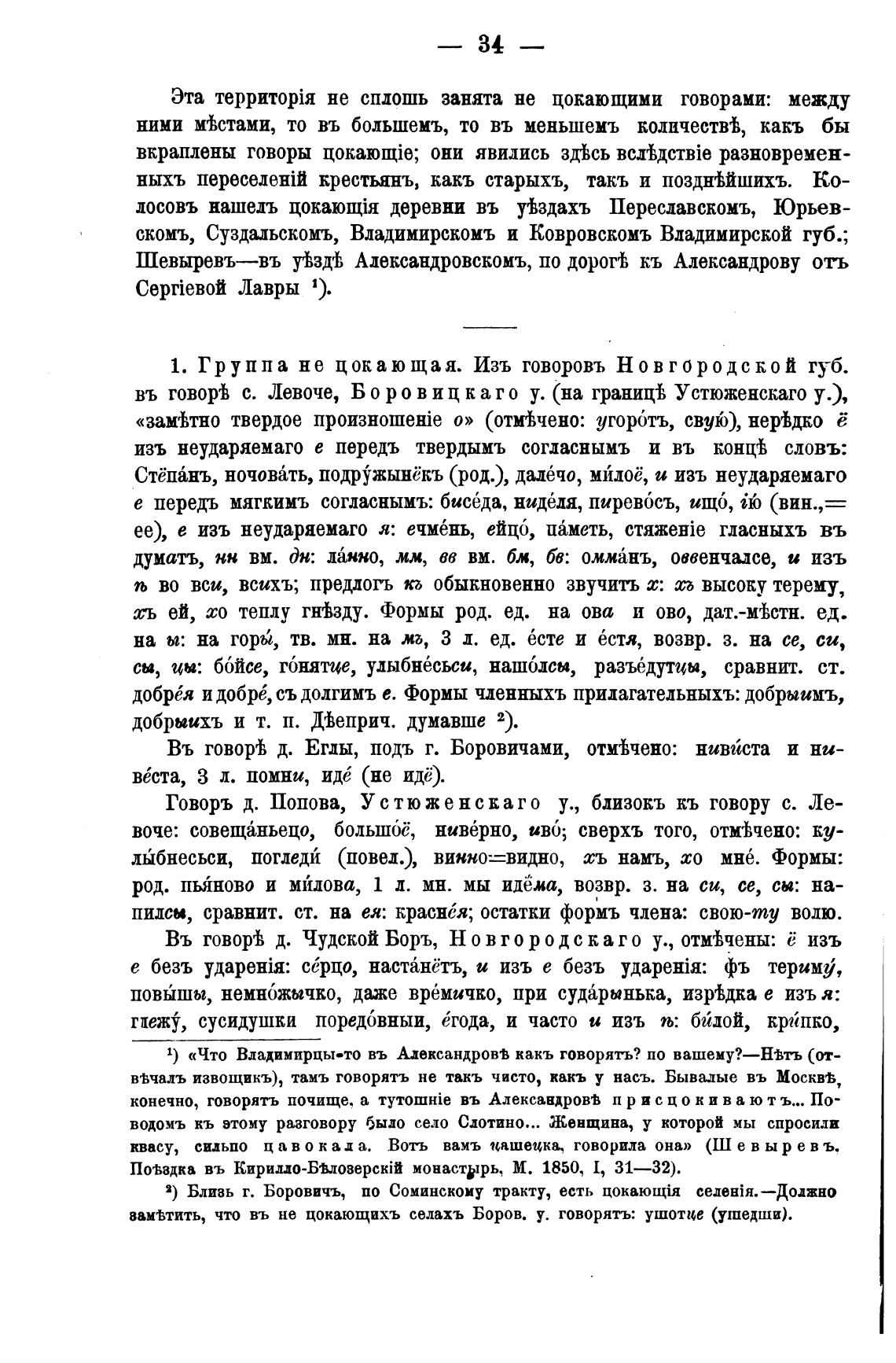 1. Группа не цокающая. Изъ говоровъ Новгородской губ.