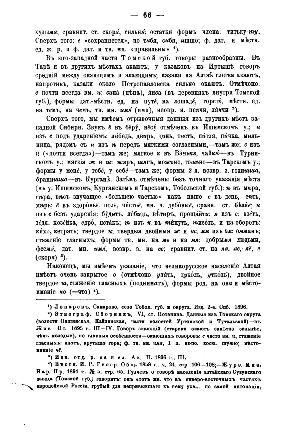 надной Сибири. Звукъ ё въ бёру, нёс$ отмтченъ въ Ишимскомъ У.; и