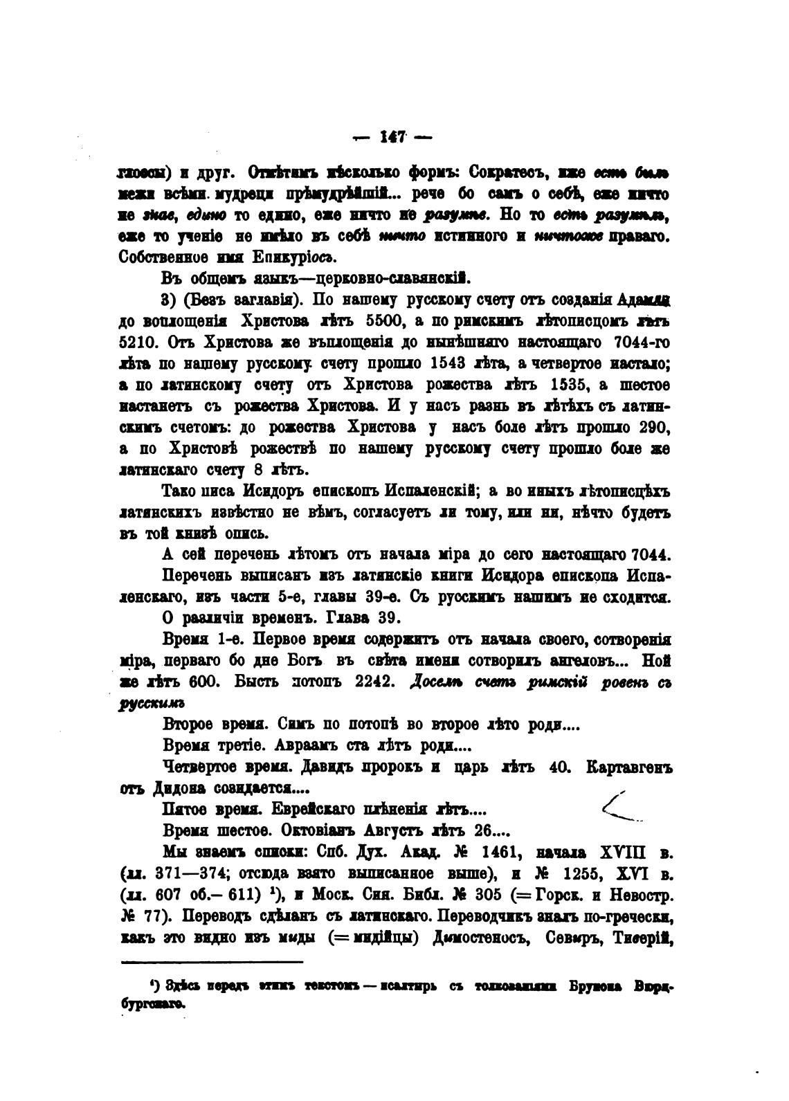 Врема 1-е. Первое ври содержитъ отъ начаиа стего, сопорајя