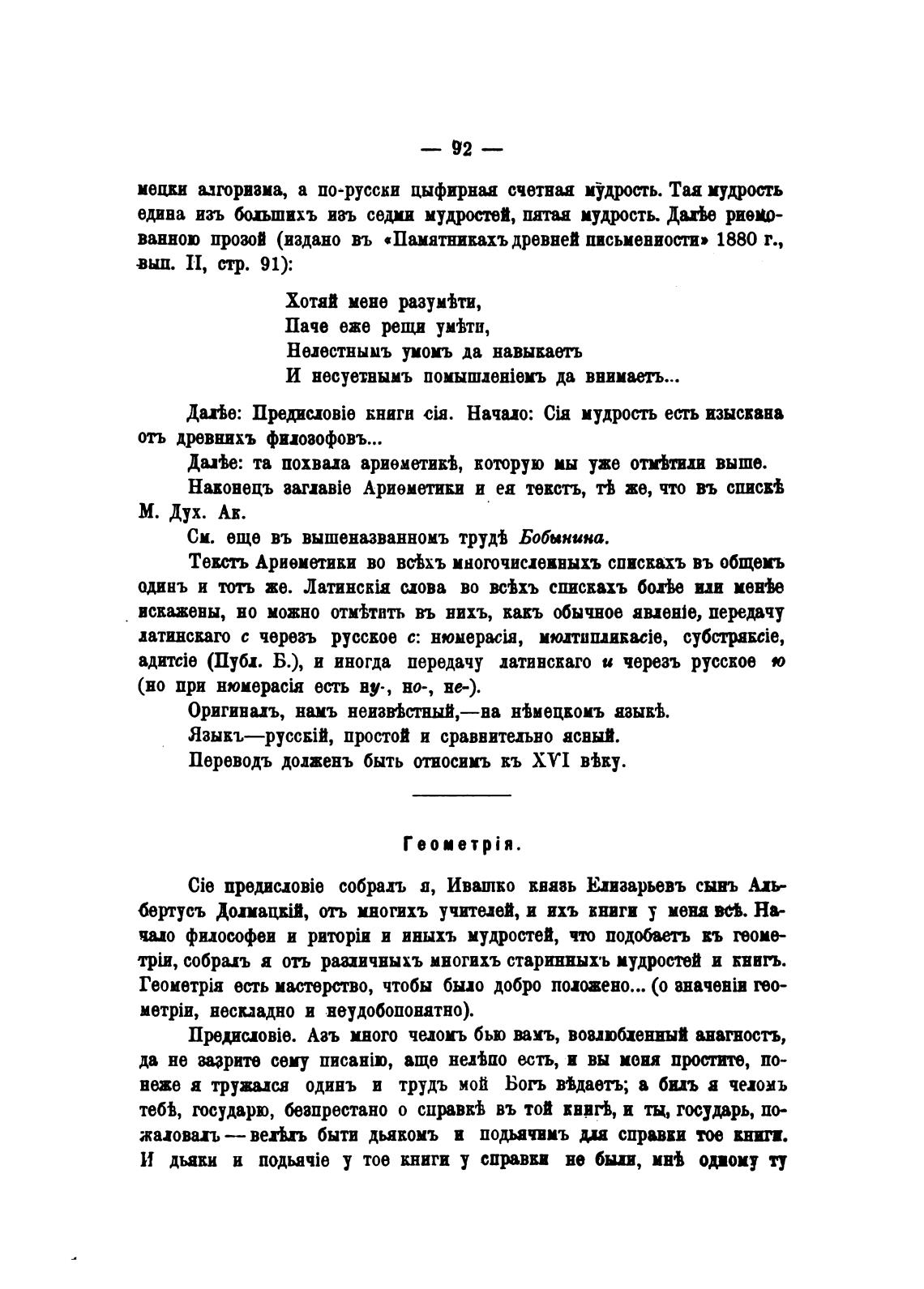 Тексть Ариемтики во вс%хъ многочииеиныхъ спискахъ въ общеиъ