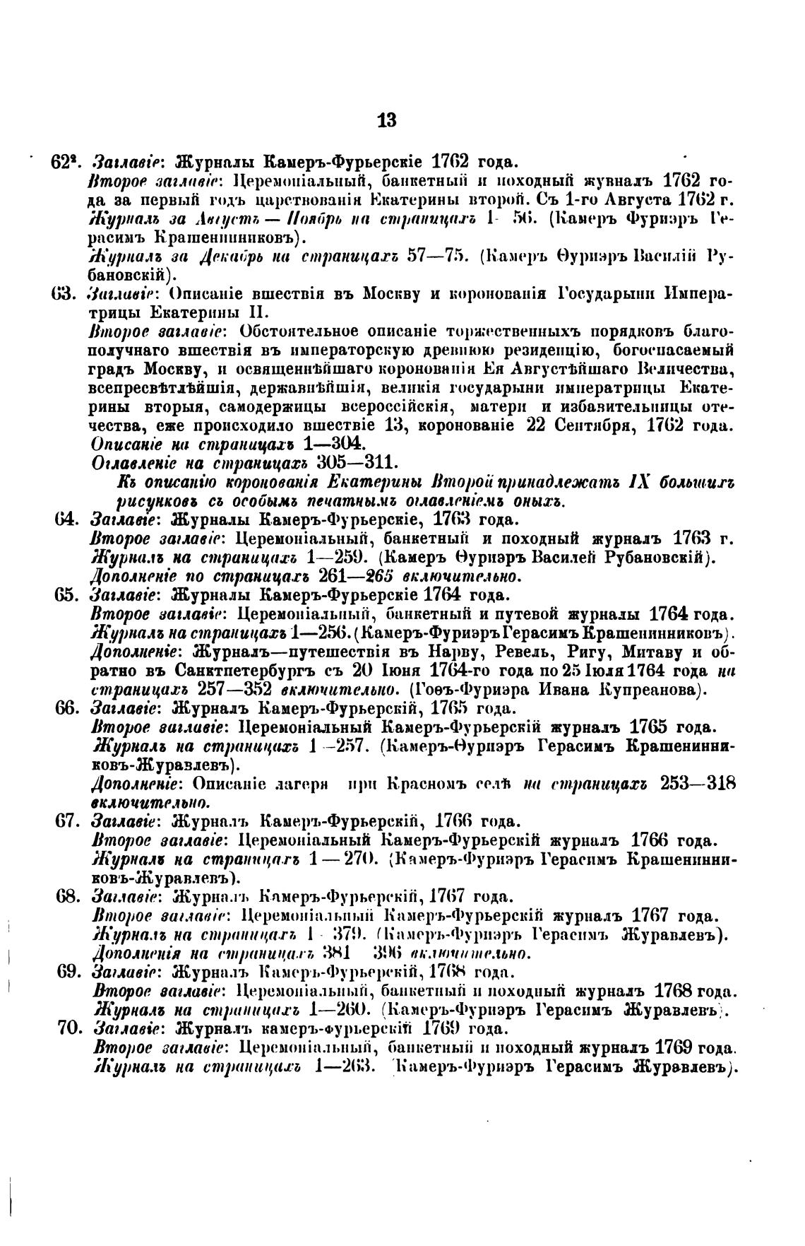 Журнал на страница.гь 1 — 27(). (Камеръ-фуриэръ Герасимъ Крашенинни-