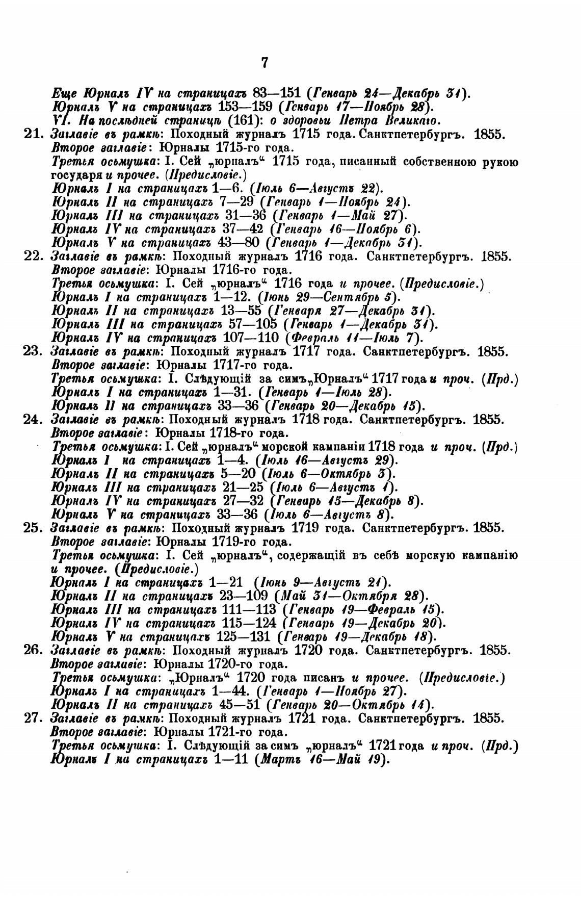 25. 3auaaie ражкњ: Походный журналь 1719 года. Санктпетербургъ.