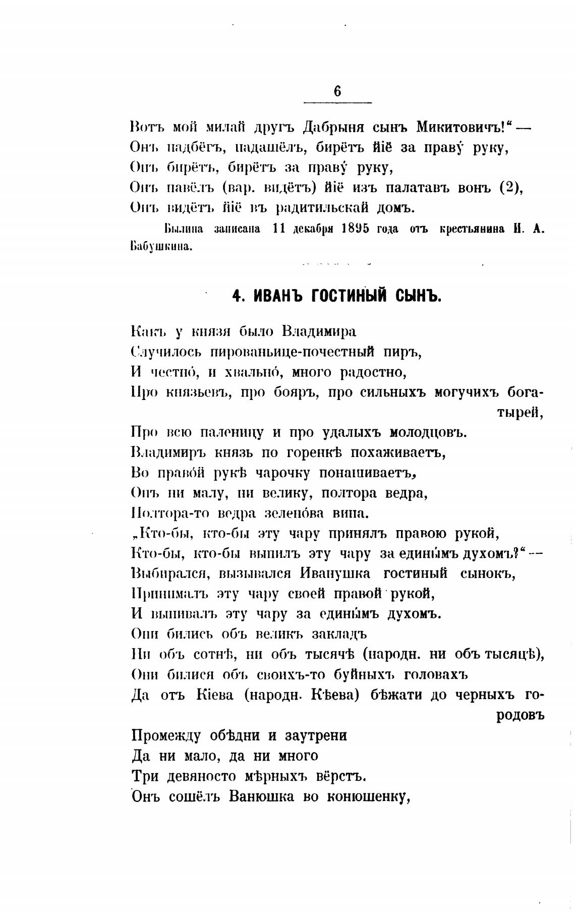 Былина записана 11 декабри 1895 года отъ крестьянина И. А.