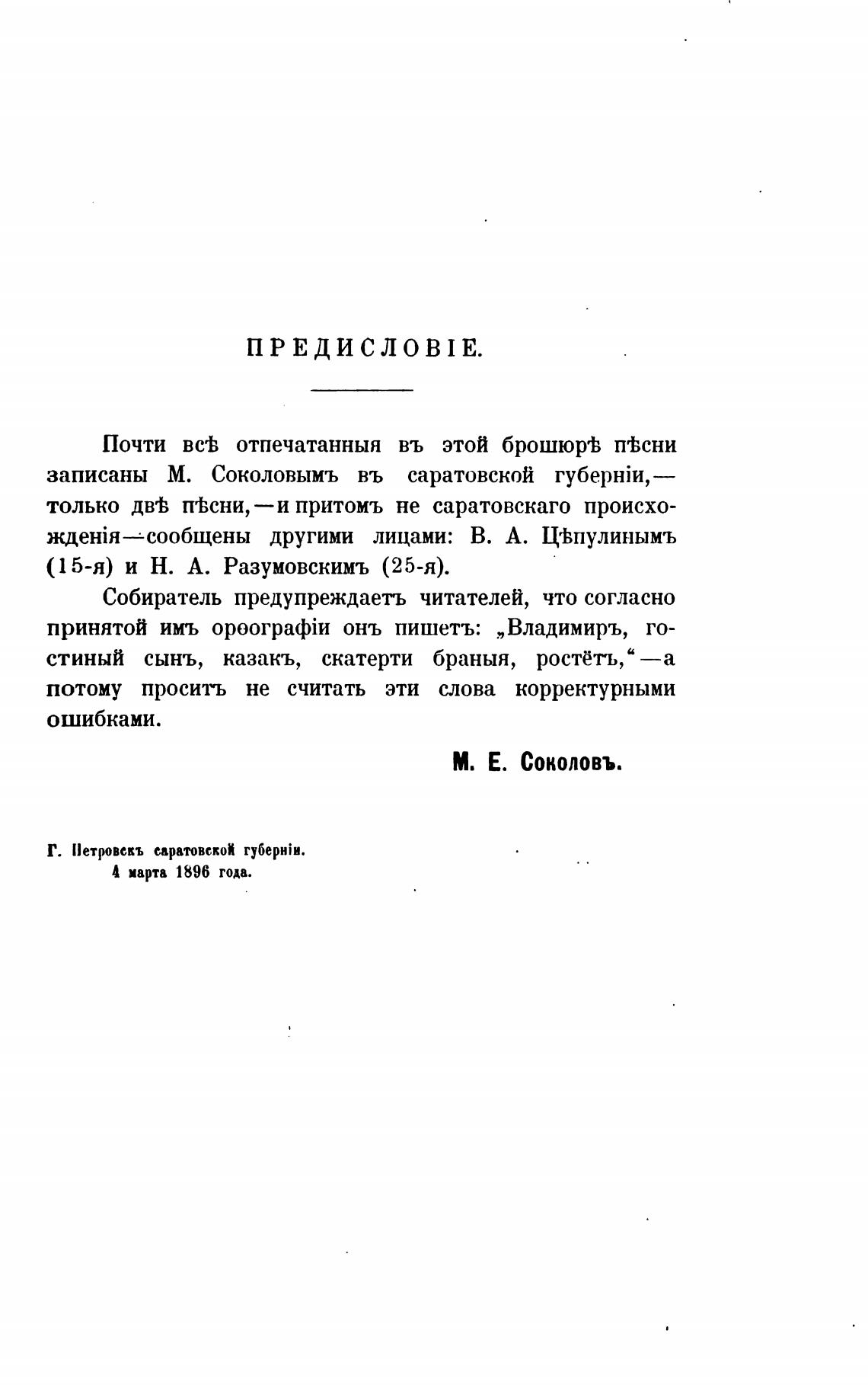 записаны М. Соколовымъ въ саратовской губернЈи, —