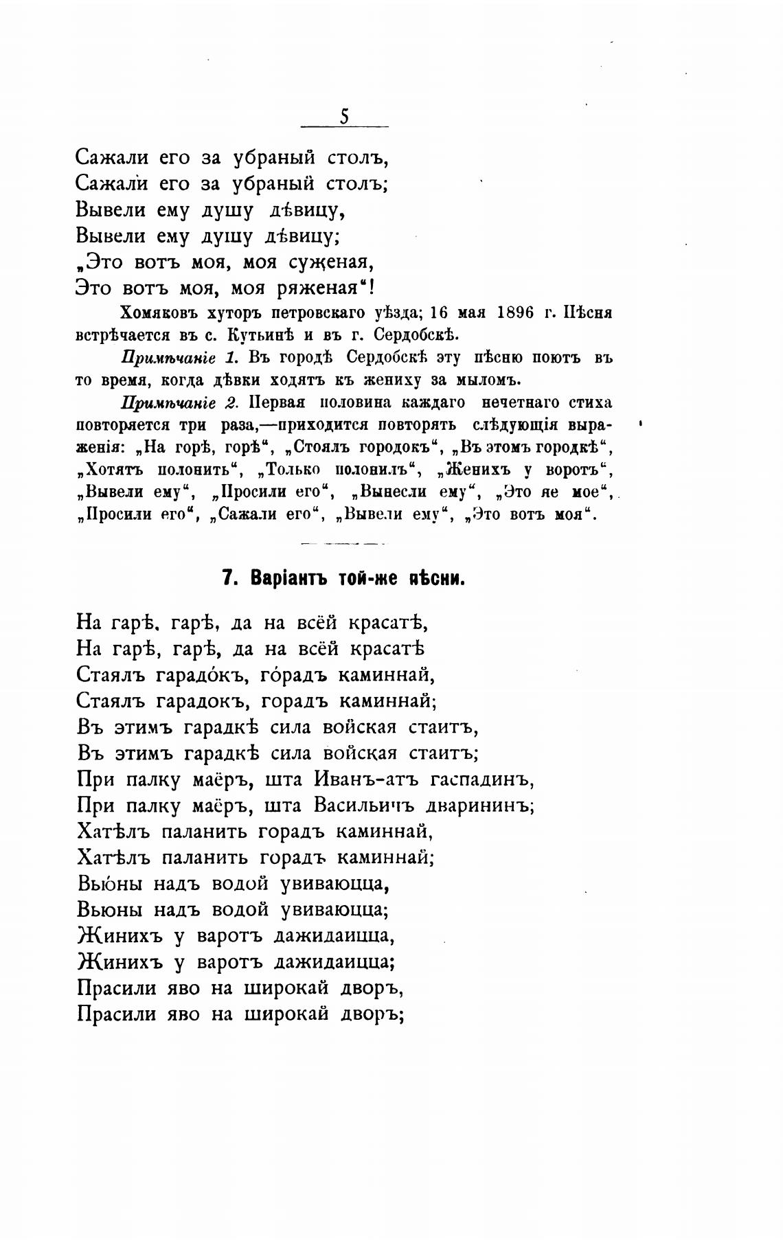 npu.'twtaHie 1. Въ Сердобск•ћ эту певсню поютъ въ