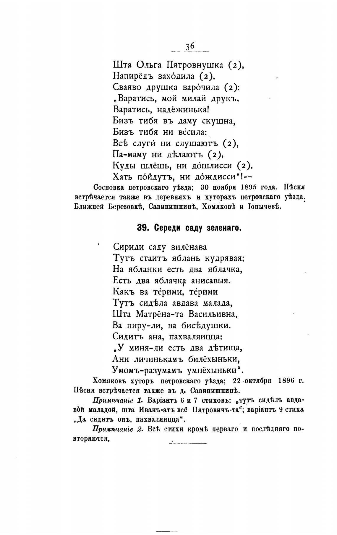 Сосновка петровскаго у±зда; 30 ноября 1895 года. П'Ьснн