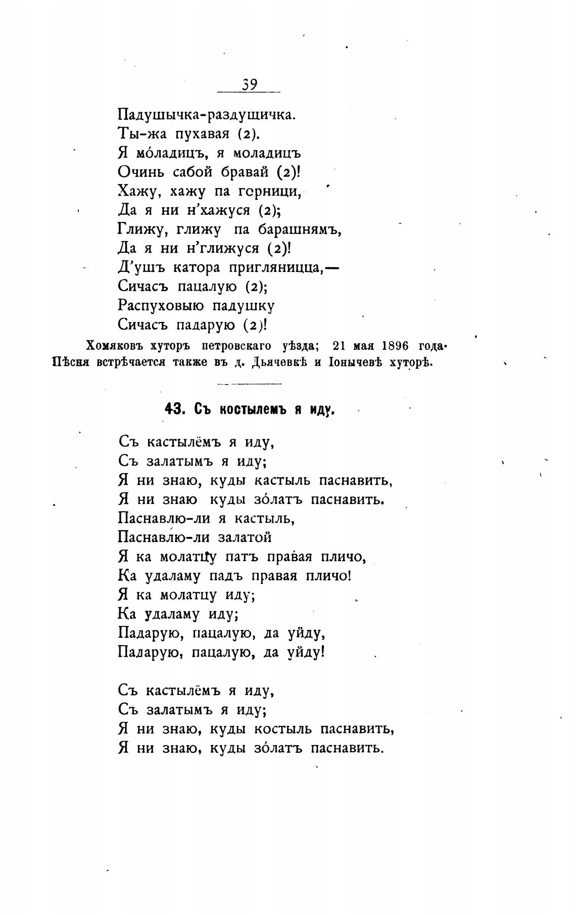 П'Ьсня вст[йчается также въ д. Дьячевк•ћ и 1онычев'Ь xyToph.
