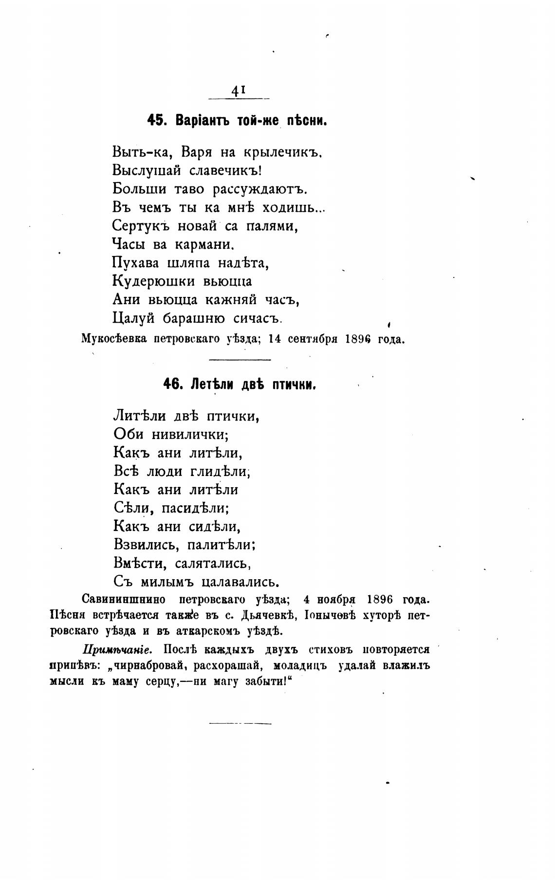 ПТсня встрТчается так“ въ с. Дьячевй, Тонычев'Ь хуторт пет-