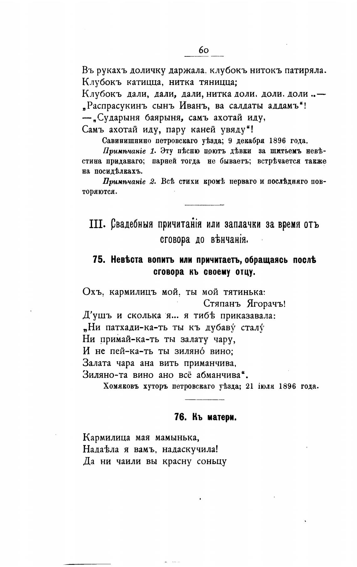 III. Рвадебныя или заплачки за время отъ