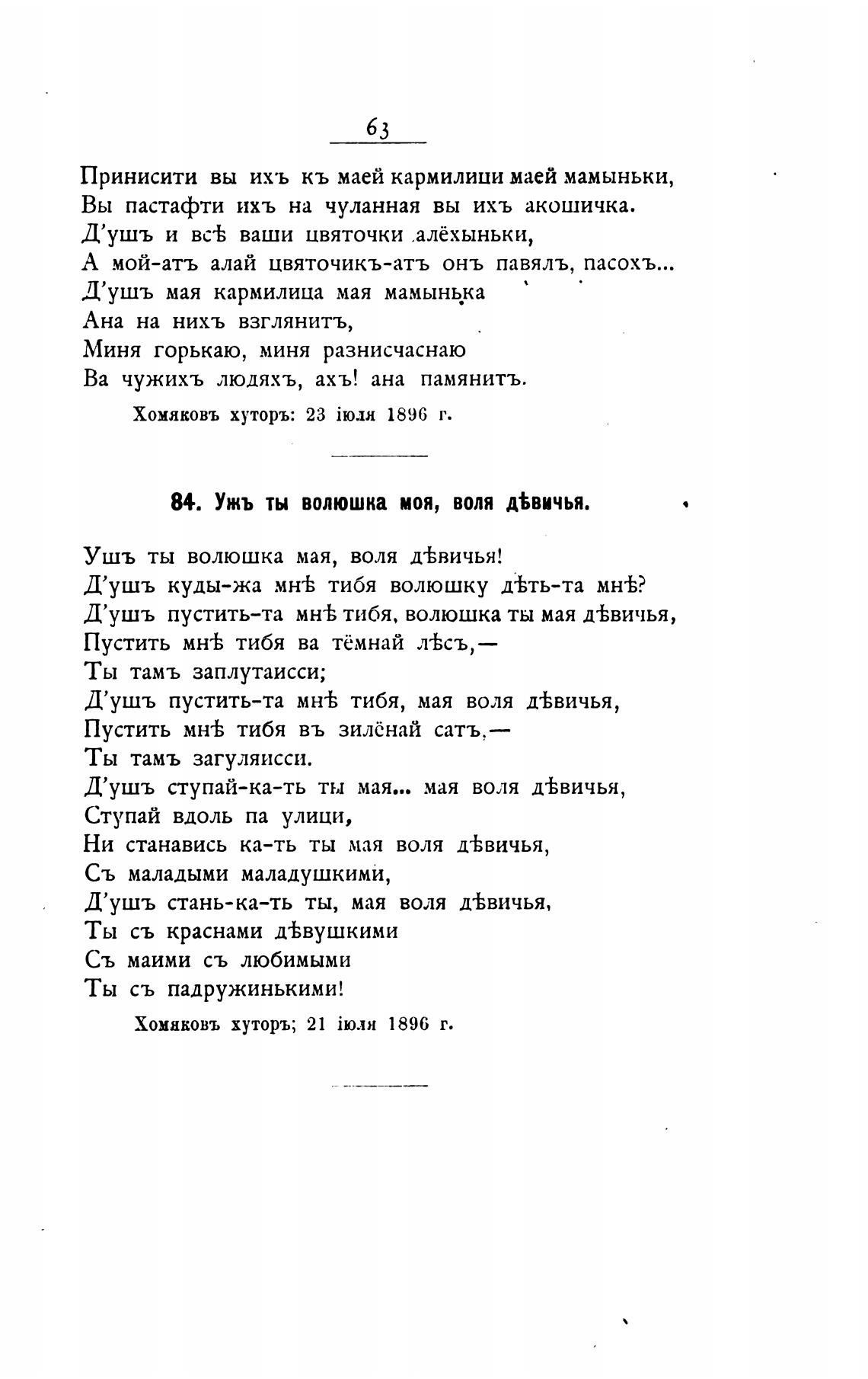 84. Ужъ ты волюшка моя, воля д%вичья.