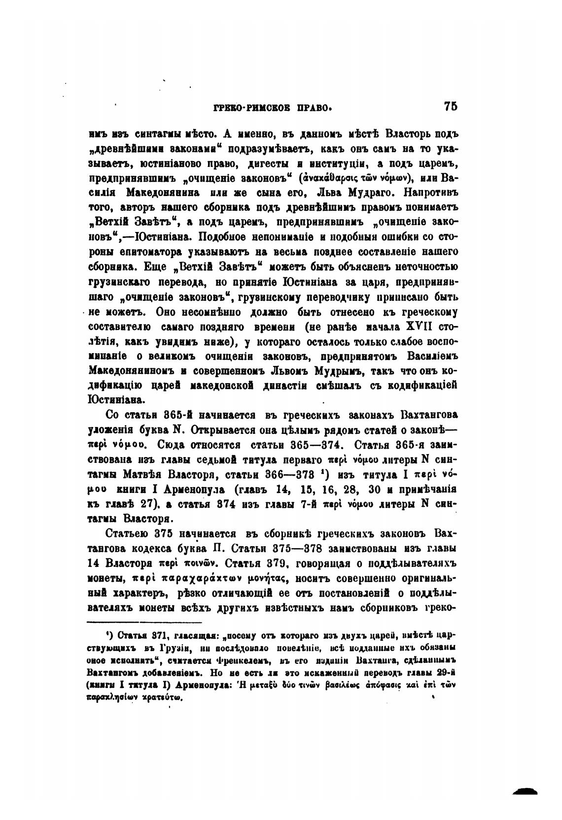 Статьею 375 начинается въ сборник•ј; греческихъ законовъ Вах-