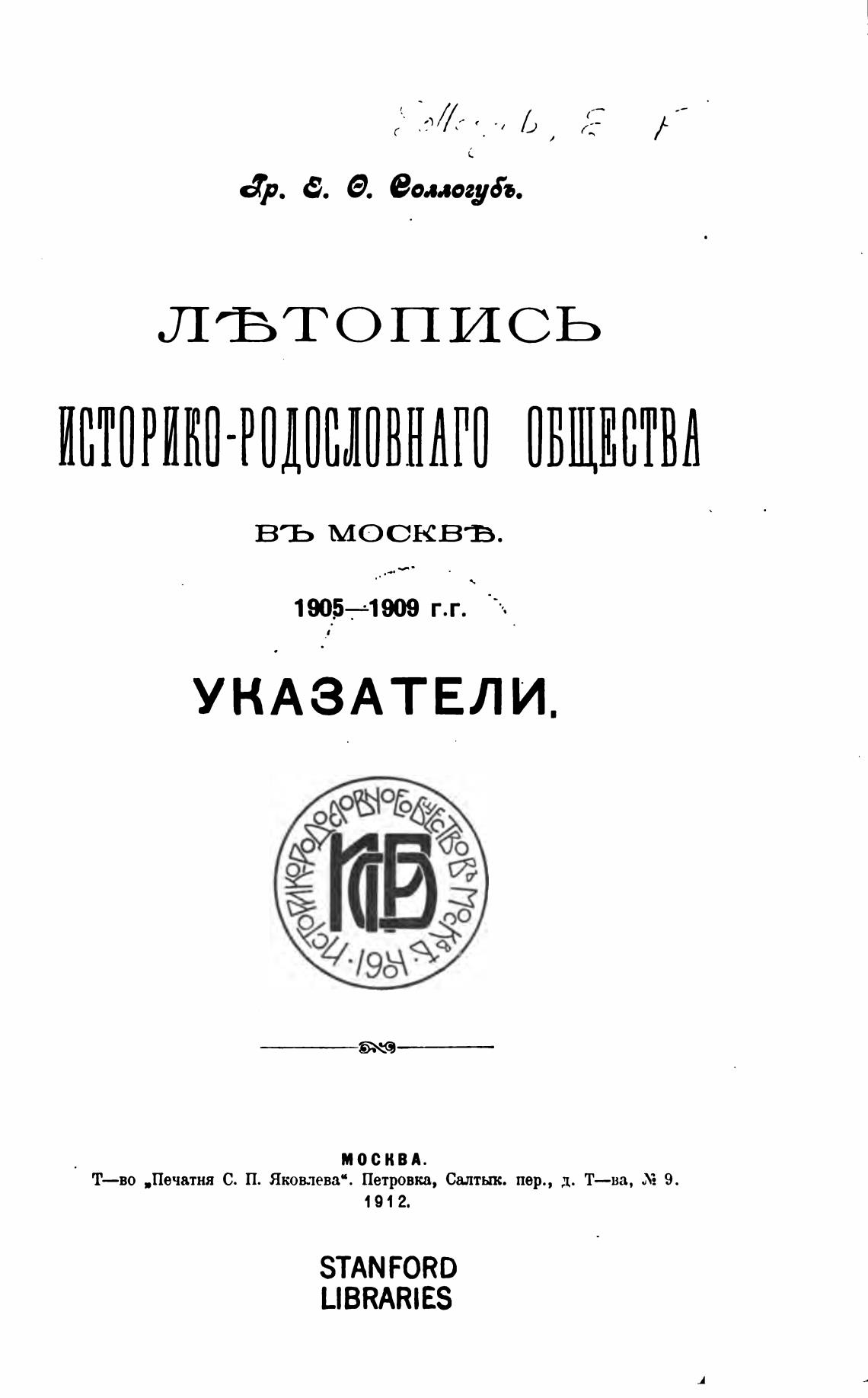 Т—во „Печатня С. П. Яковлева“. Петровка, Салтык. пер., д. Т—ва, 9.