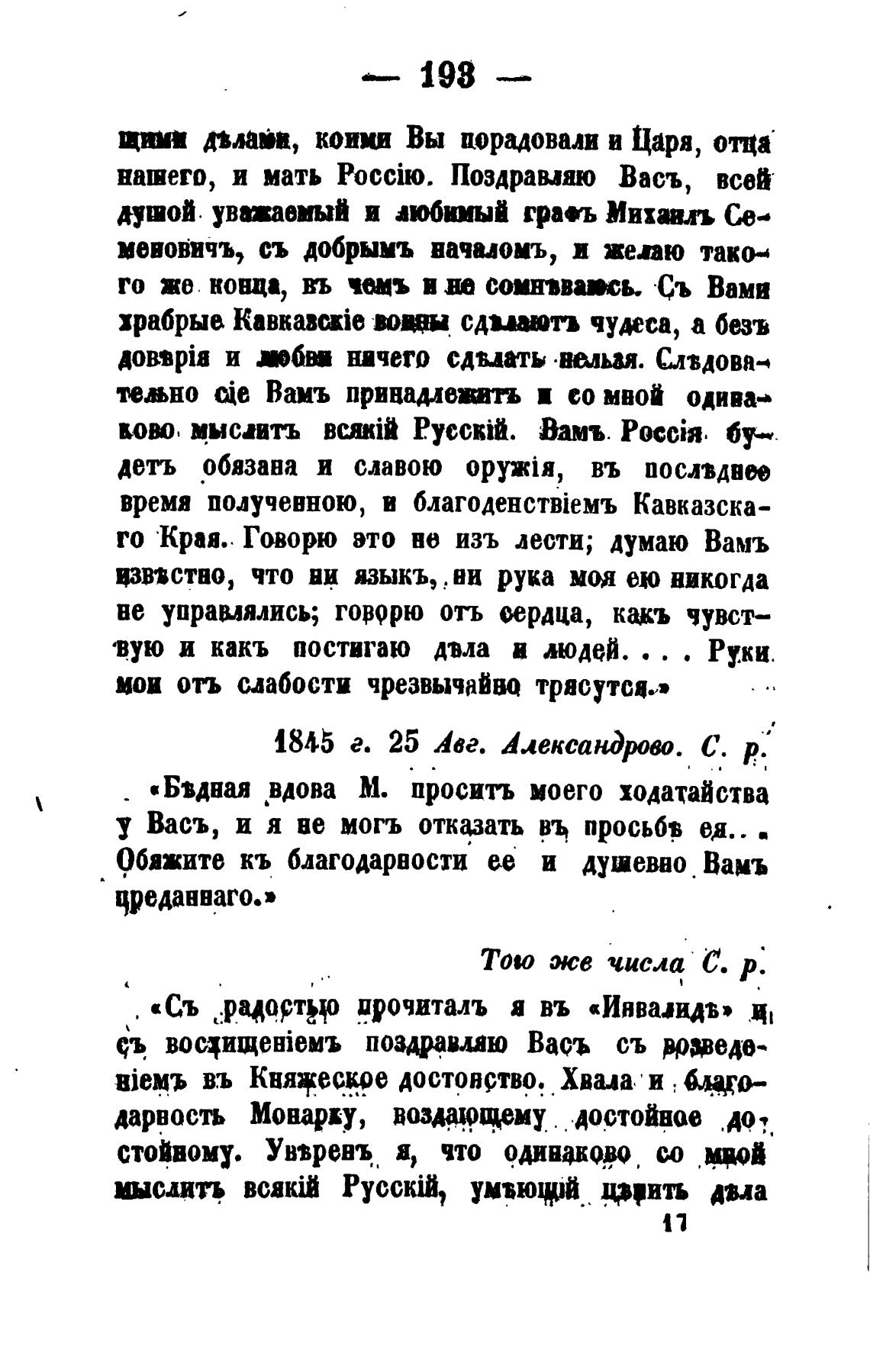 1845 е. 25 Авг. АлексанЭрово. С. р.