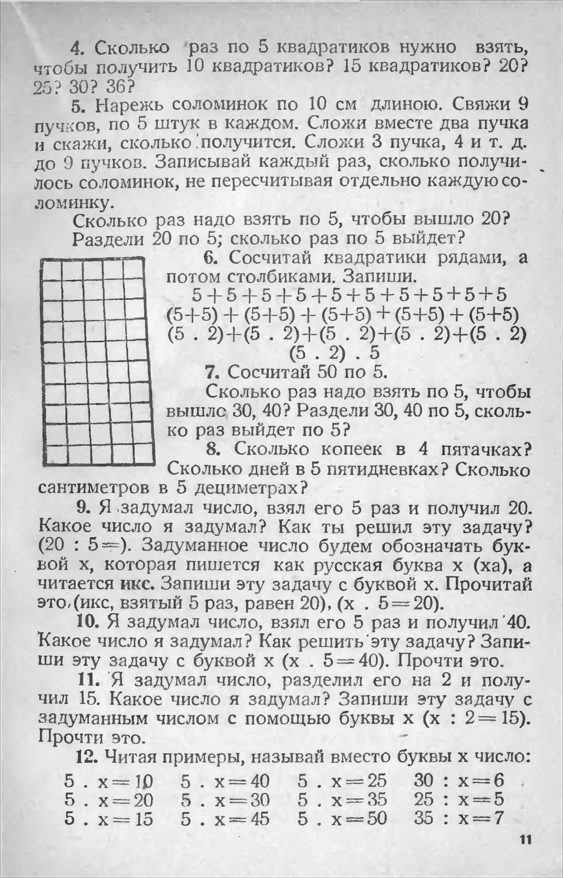 4. Сколько раз по 5 квадратиков нужно взять,
