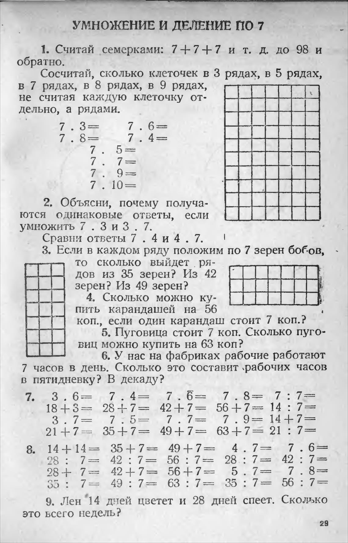 З. Если в каждом ряду положим по 7 зерен бобов,