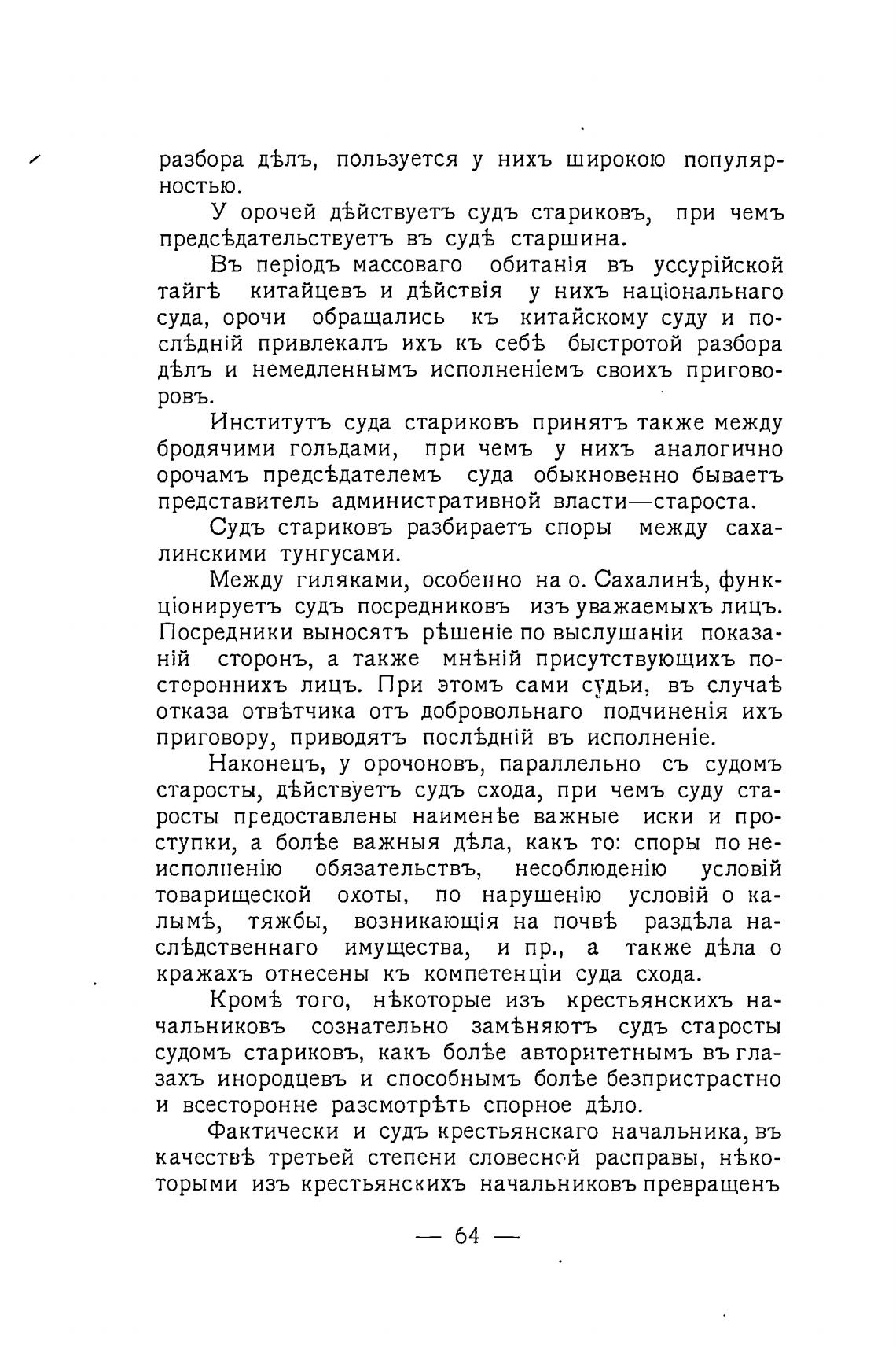 У орочей д%йствуетъ судь стариковъ, при чемъ