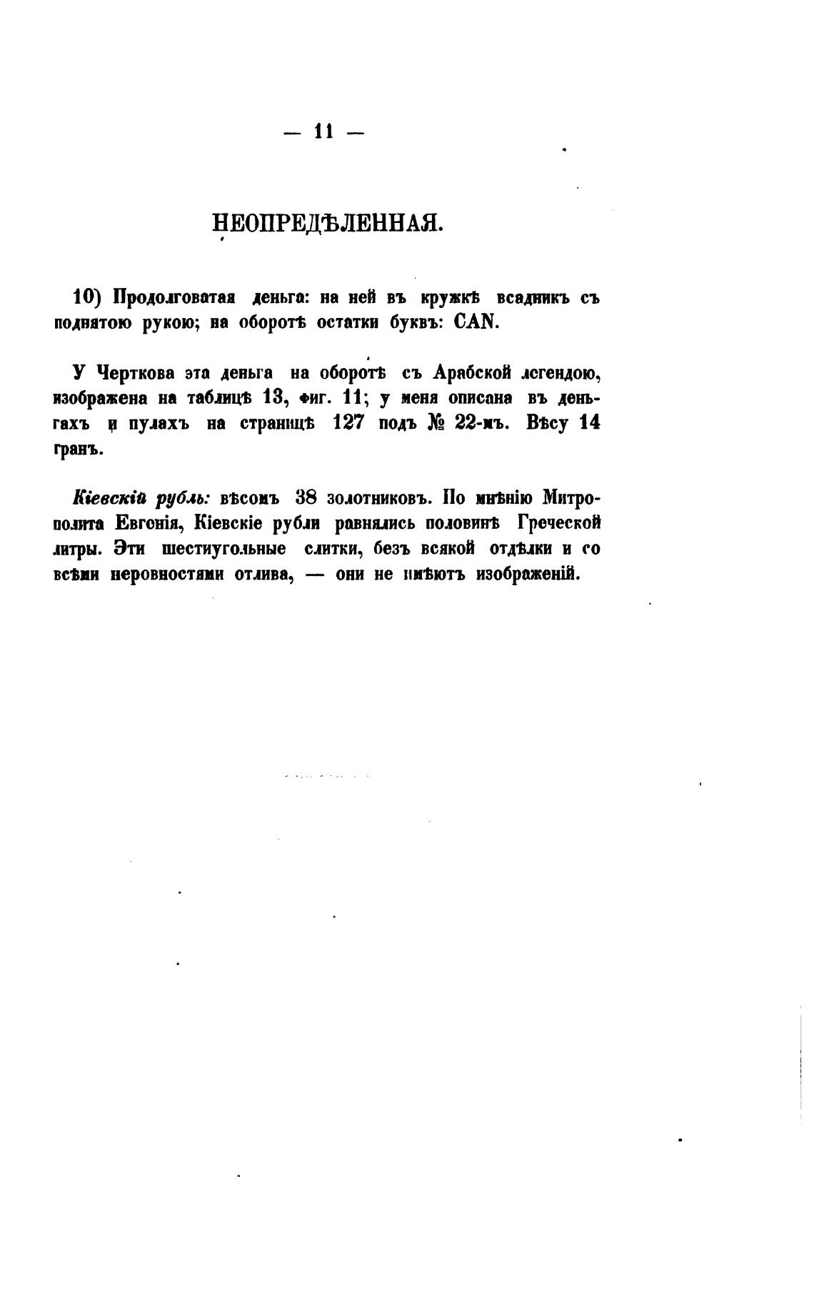 10) Продолговатая деньга: на ней въ кружкв всадникъ съ