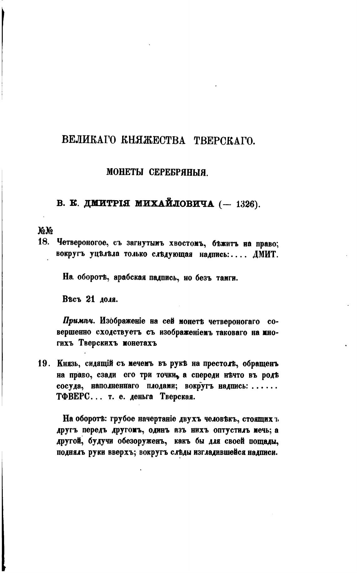 гихъ Тверскихъ ионетахъ