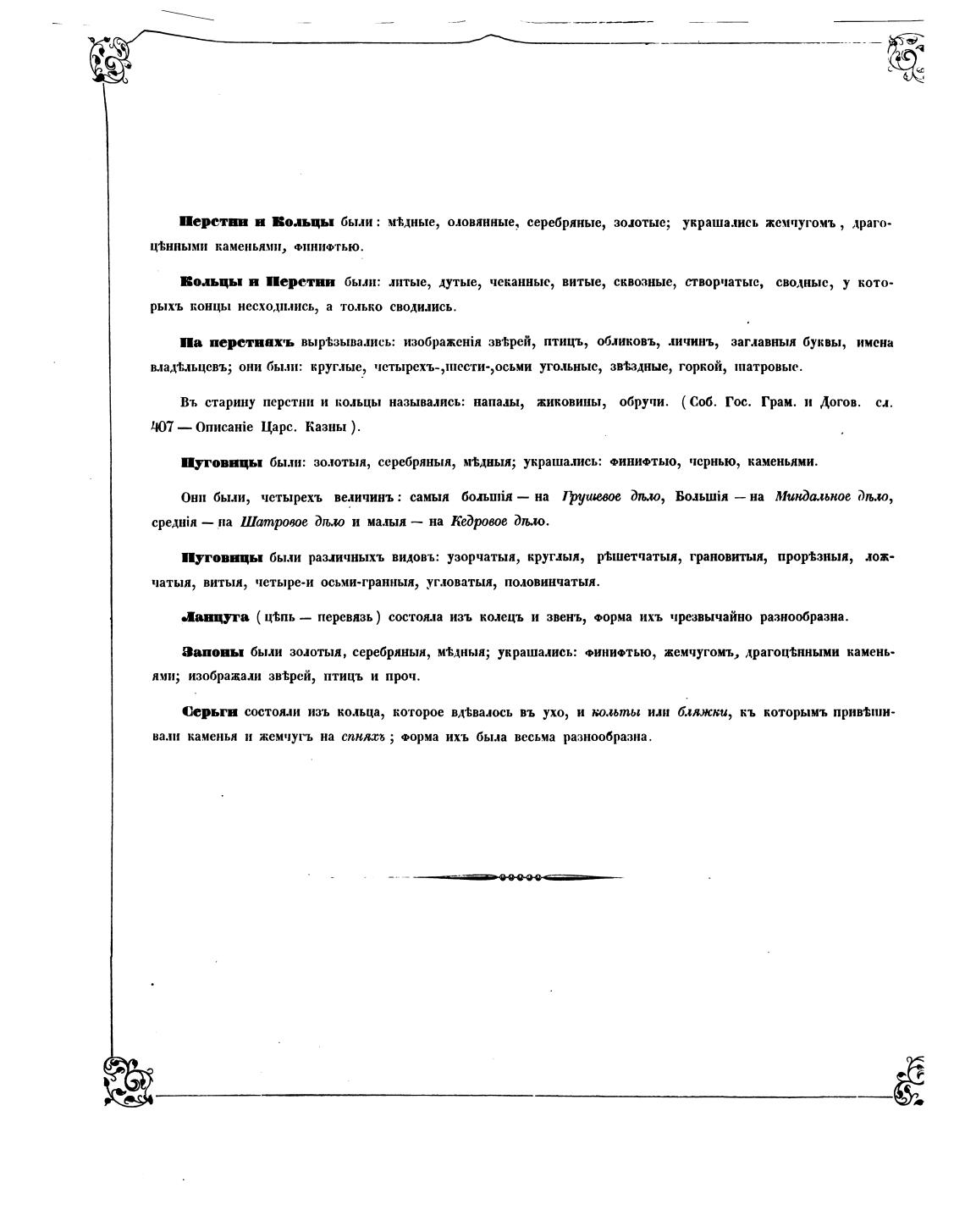 Пуговицы были: золотыя, се1Ч»янын, м•Ьдныя; украшались: ФИНИФТЬЮ, чернью, каменьями.