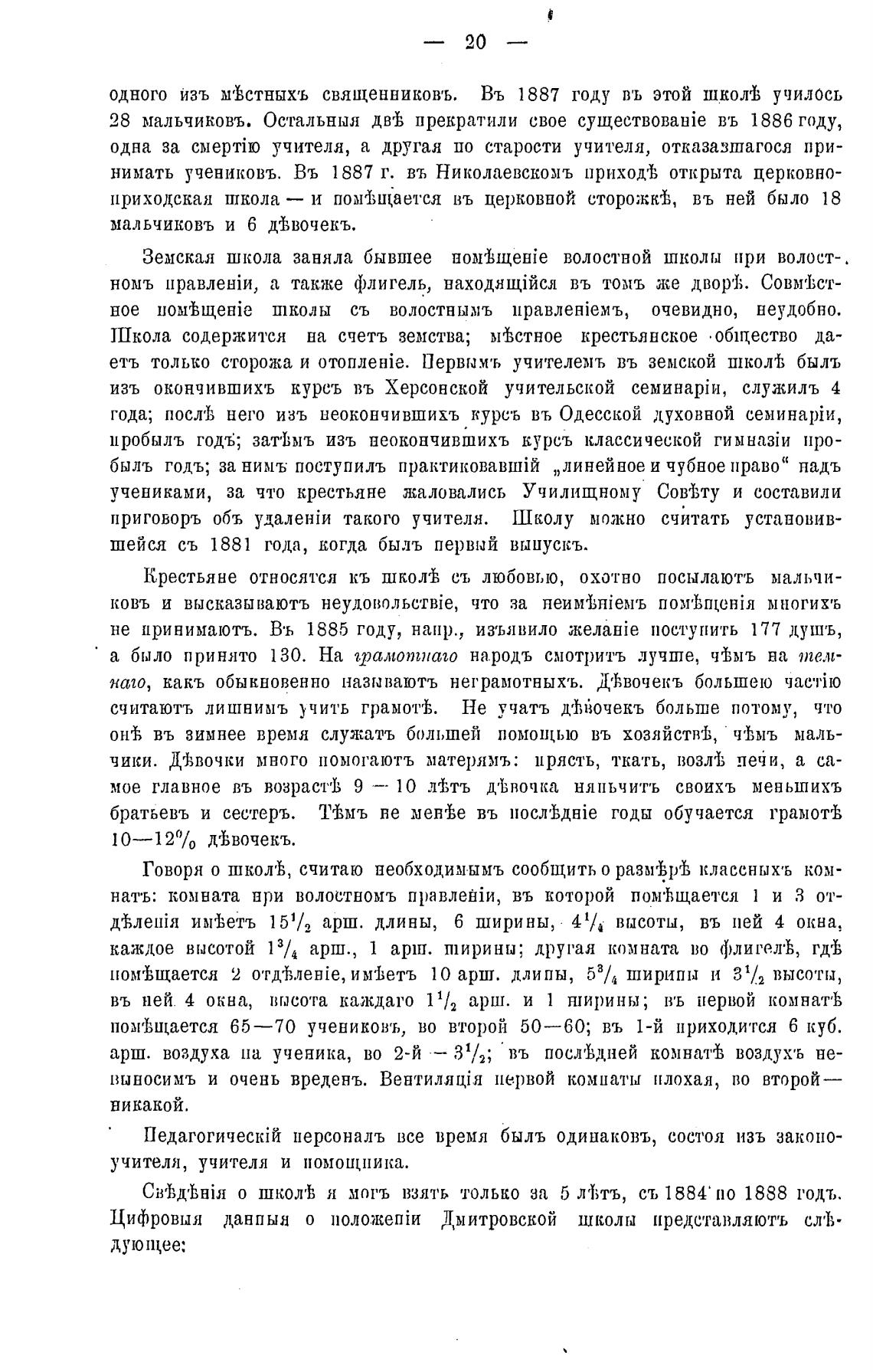 нимать учениковъ. Въ 1887 г. въ Николаевскомъ приход'В открыта церковно-