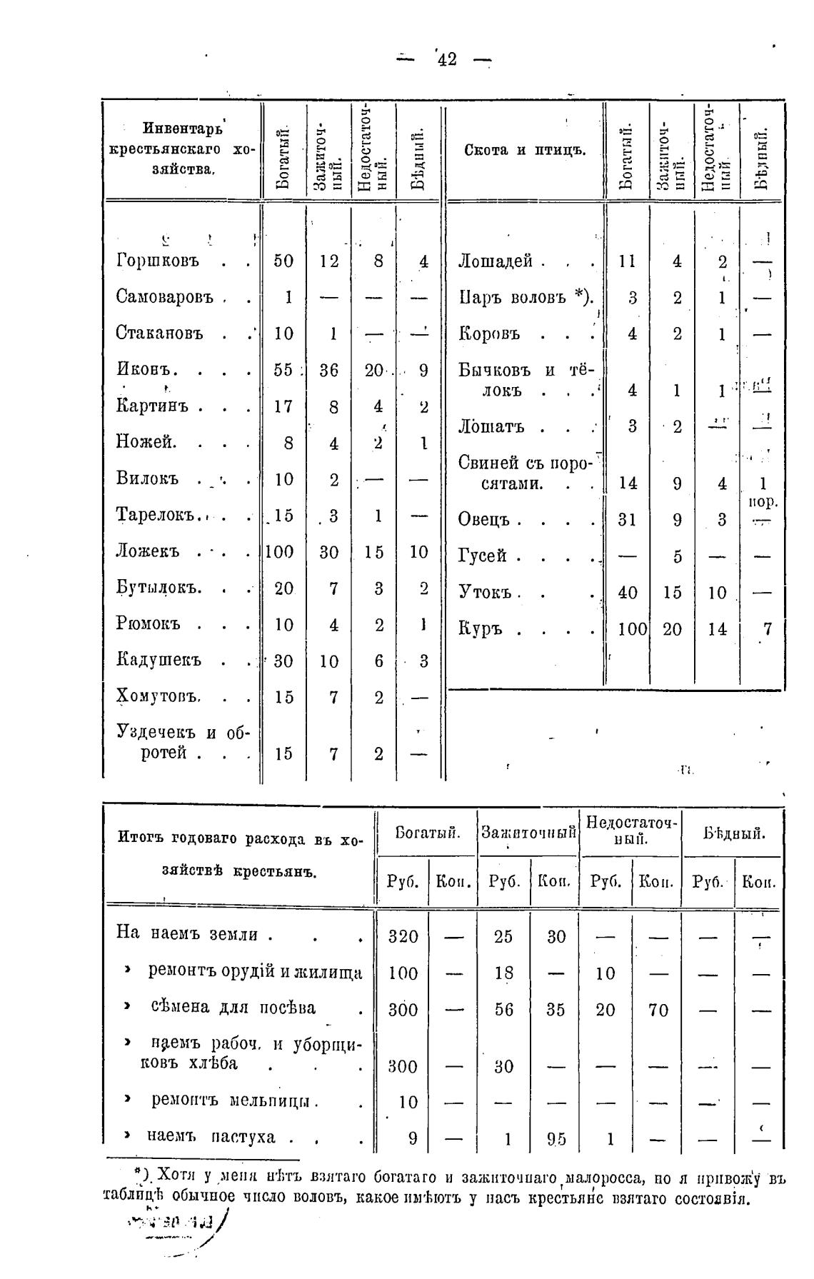 таблпц'ђ обычное число водовъ, какое имт,ютъ у наст, крестьянс взятаго состоавјя.