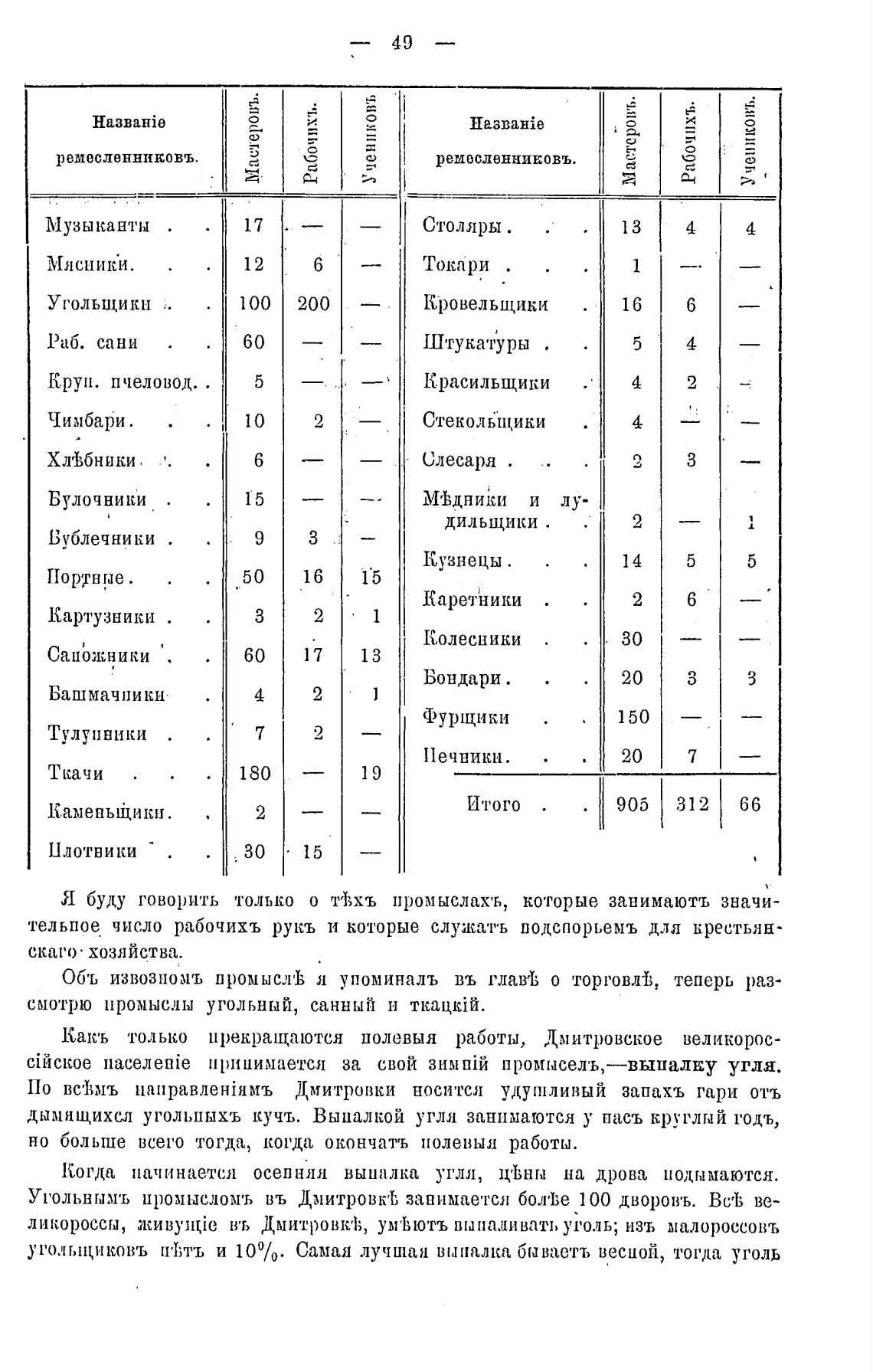 УГОЛЬНЫМ'Ь иромысломъ въ Дмитровкф, занимается 60Ј1'Ве 100 дворовъ. BcrL ве-