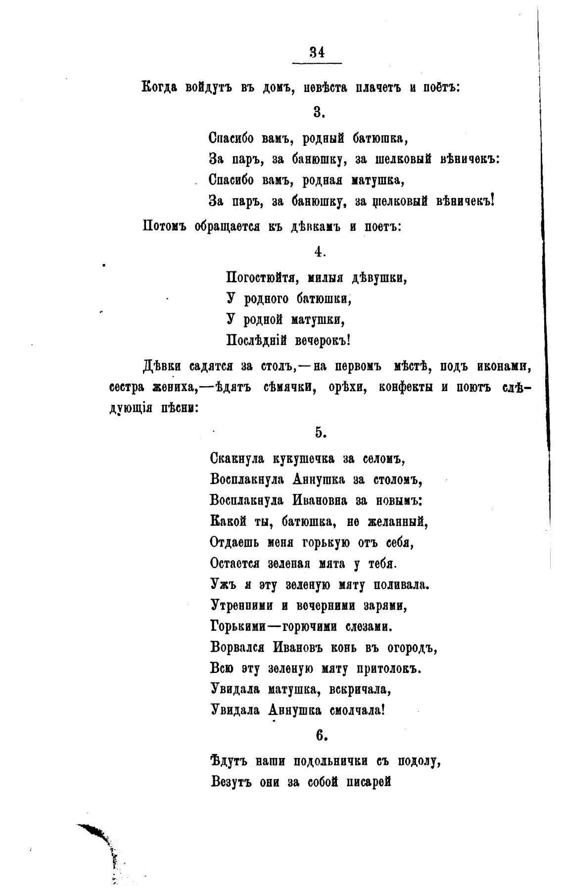 Когда войдутъ въ доиъ, невЈста плачетъ и поеть: