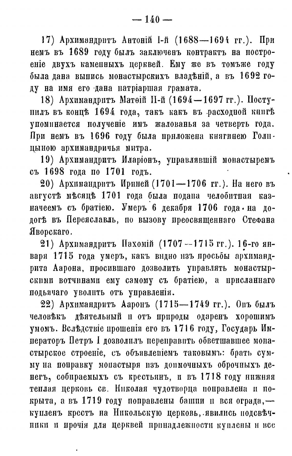 22) Архимандритъ Ааронъ (1715—1749 гг.). Опь быль